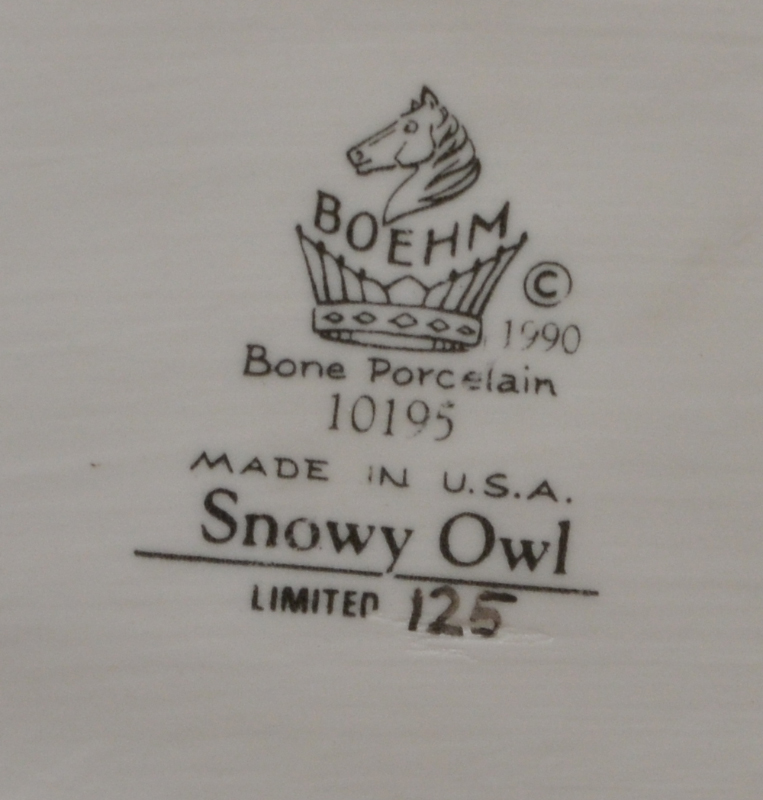 BOEHM PORCELAIN SNOWY OWL #10195: Limited edition 125, 11 3/4'' h. x 10'' x 6'' approx.