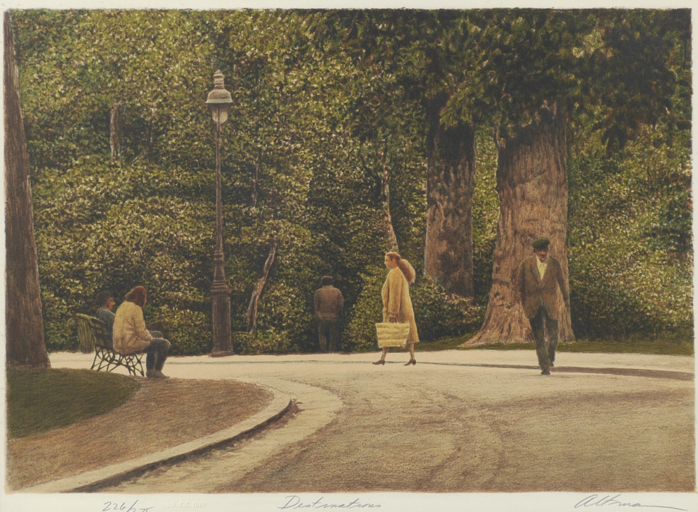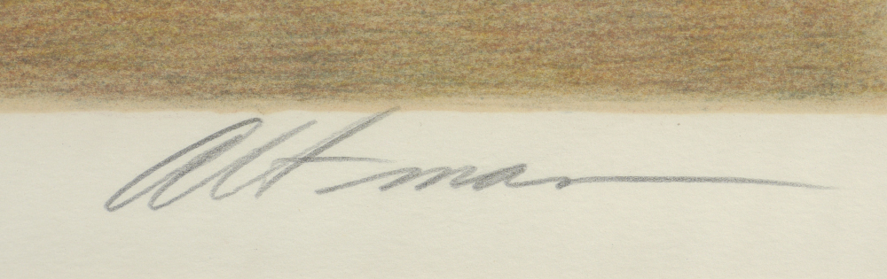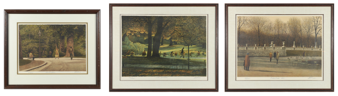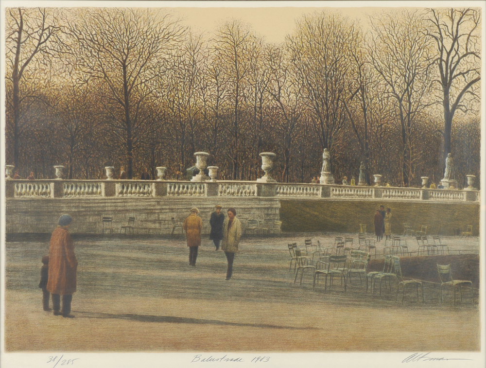 ALTMAN, Harold, (American, 1924-2003): 1) ''Ballestrade 1983'', Lithograph, sight size 19.5'' x 26'', pencil signed lower right, numbered 38/285, titled in lower margin and dated, framed, 20.5'' x 32.5''; 2) ''Destinations'', Lithograph, sight size 15'' x 20.5'', pencil signed lower right and titled in margin, numbered 26/275, blind stamp from printer dated 1984 lower left, wooden frame, 24'' x 28.5''; 3) ''Late Afternoon'', Lithograph, sight size 19.25'' x 26'', pencil signed lower right, titled in mid-margin and numbered 126/285 lower left, blind stamp lower left corner, wooden frame, 26.5'' x 32.5''.