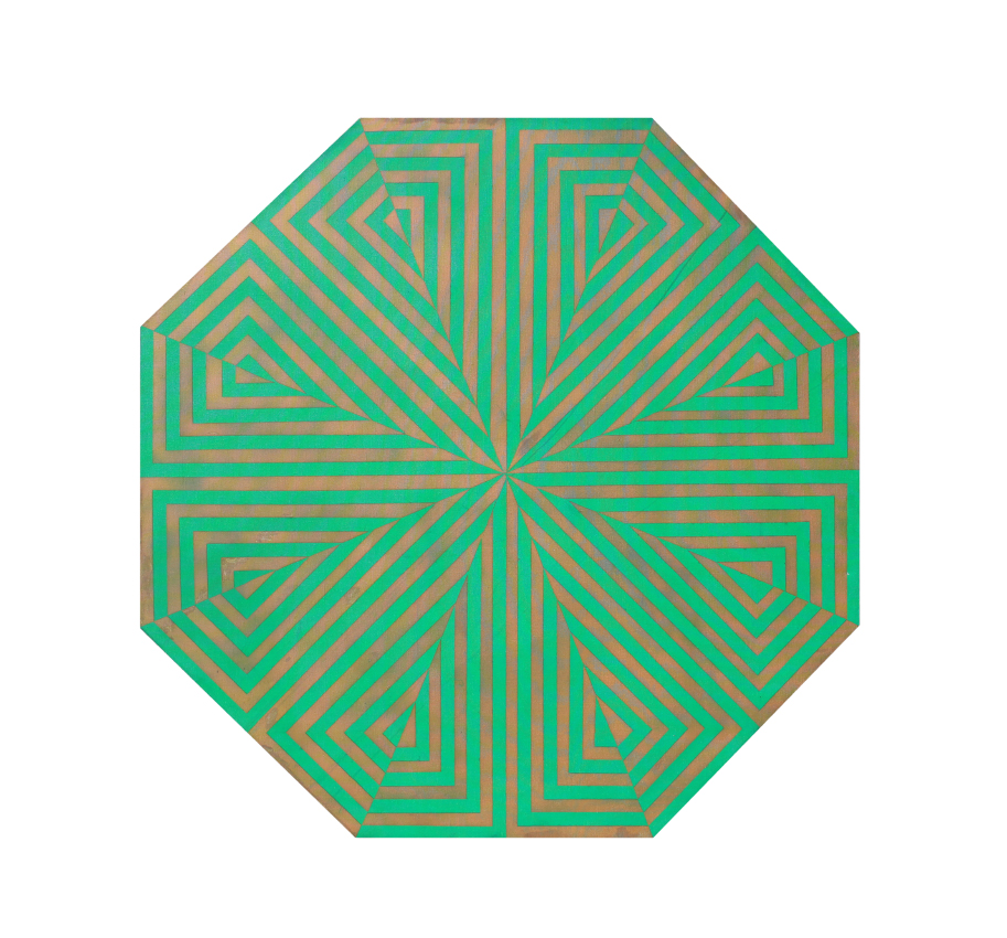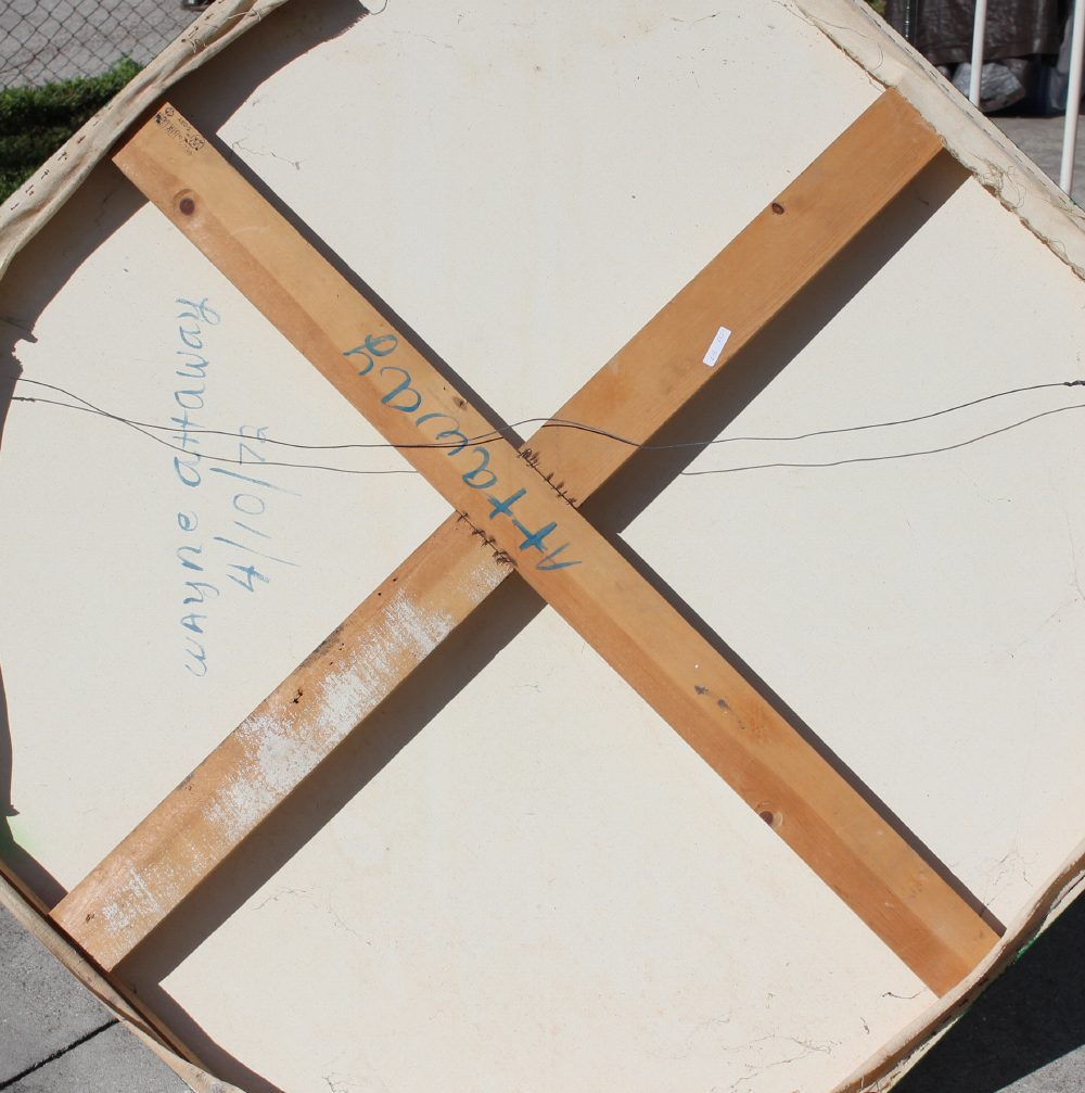 ATTAWAY, Wayne, (American, 20th C): Octagonal Geometric Op Art, Oil/Canvas, 53.25'' x 53.25'', signed on canvas verso dated '72, also signed on the stretcher, unframed.