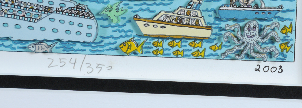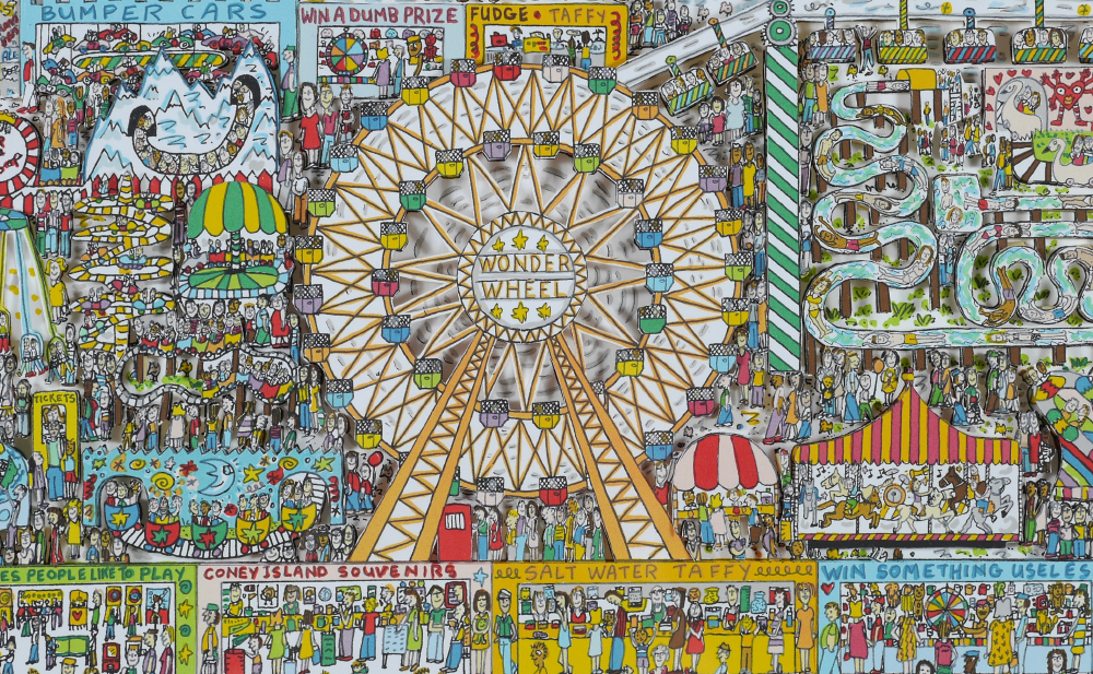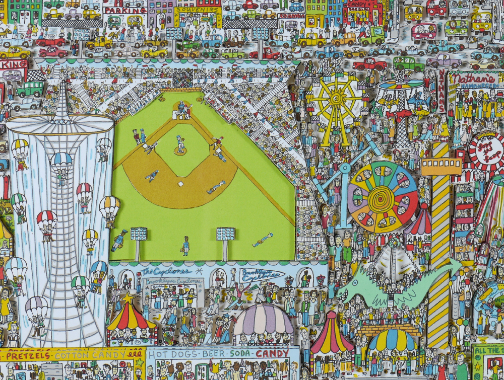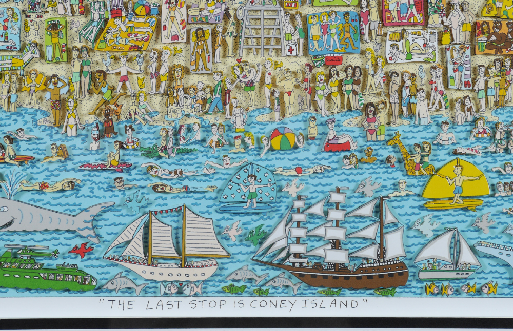 RIZZI, James, (American, 1950-2011): ''Last Stop is Coney Island'', 3-D Lithograph, sight size 27'' x 36.5'', pencil signed lower left, titled in lower margin, numbered 54//350 lower right, custom frame and matting, 38'' x 47.5''.