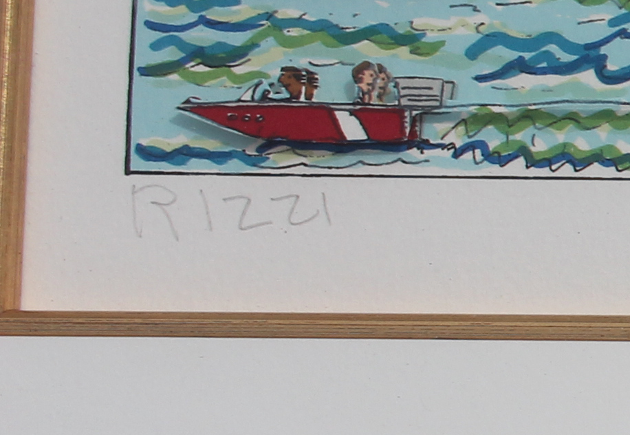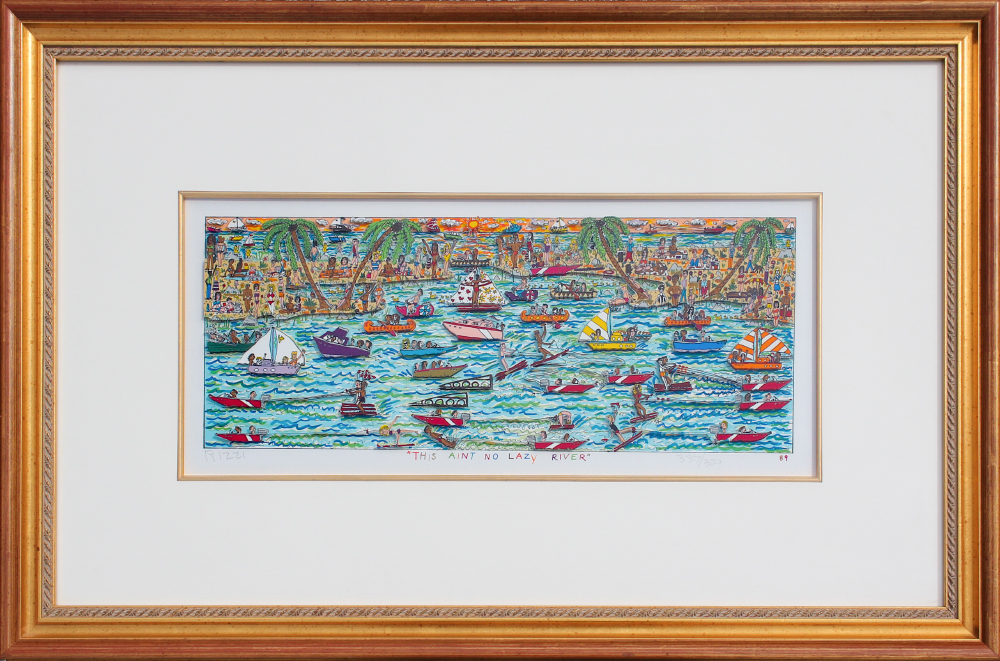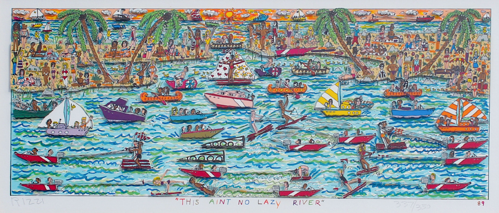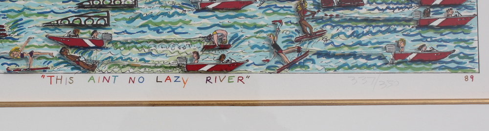 RIZZI, James, (American, 1950-2011): '' This Ain't No Lazy River'', 3D Lithograph, sight size 8.25'' x 19.25'', pencil signed lower left, titled in lower margin, numbered lower right 337/350, dated 1989, custom framing, 19'' x 30.25''.