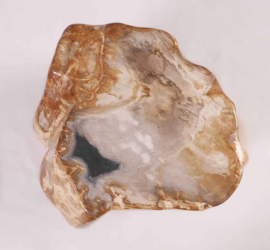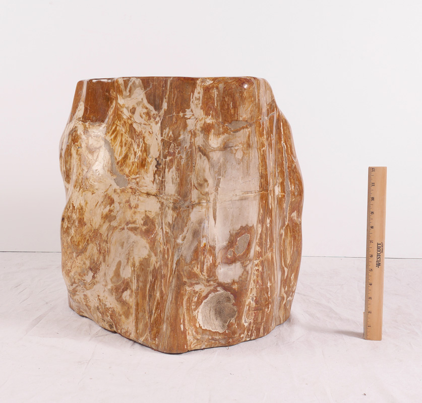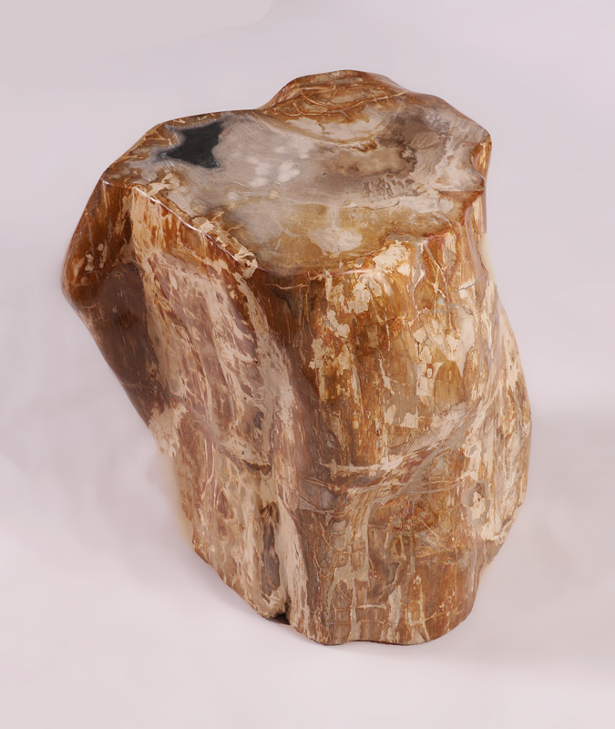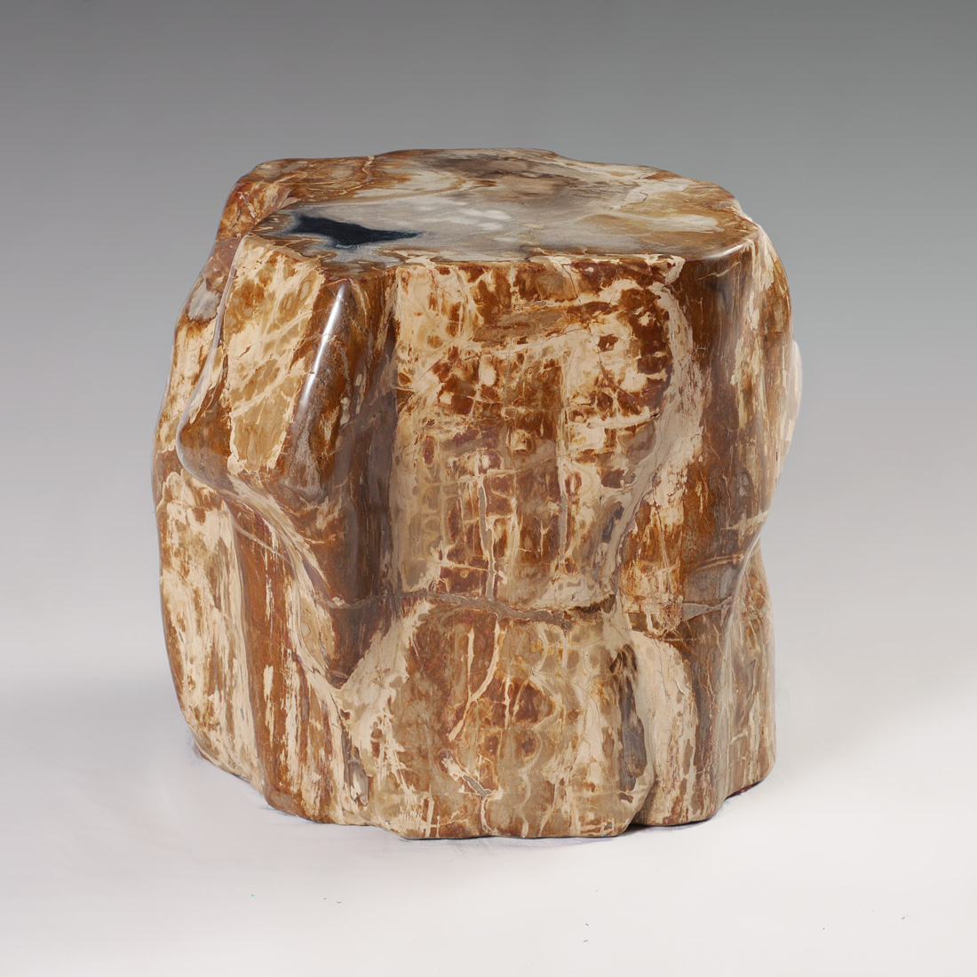 PETRIFIED WOOD STUMP END TABLE / STAND: Single stump of petrified wood, polished top and sides, overall measures 18 1/4'' h. x 19'' x 17 3/4''.