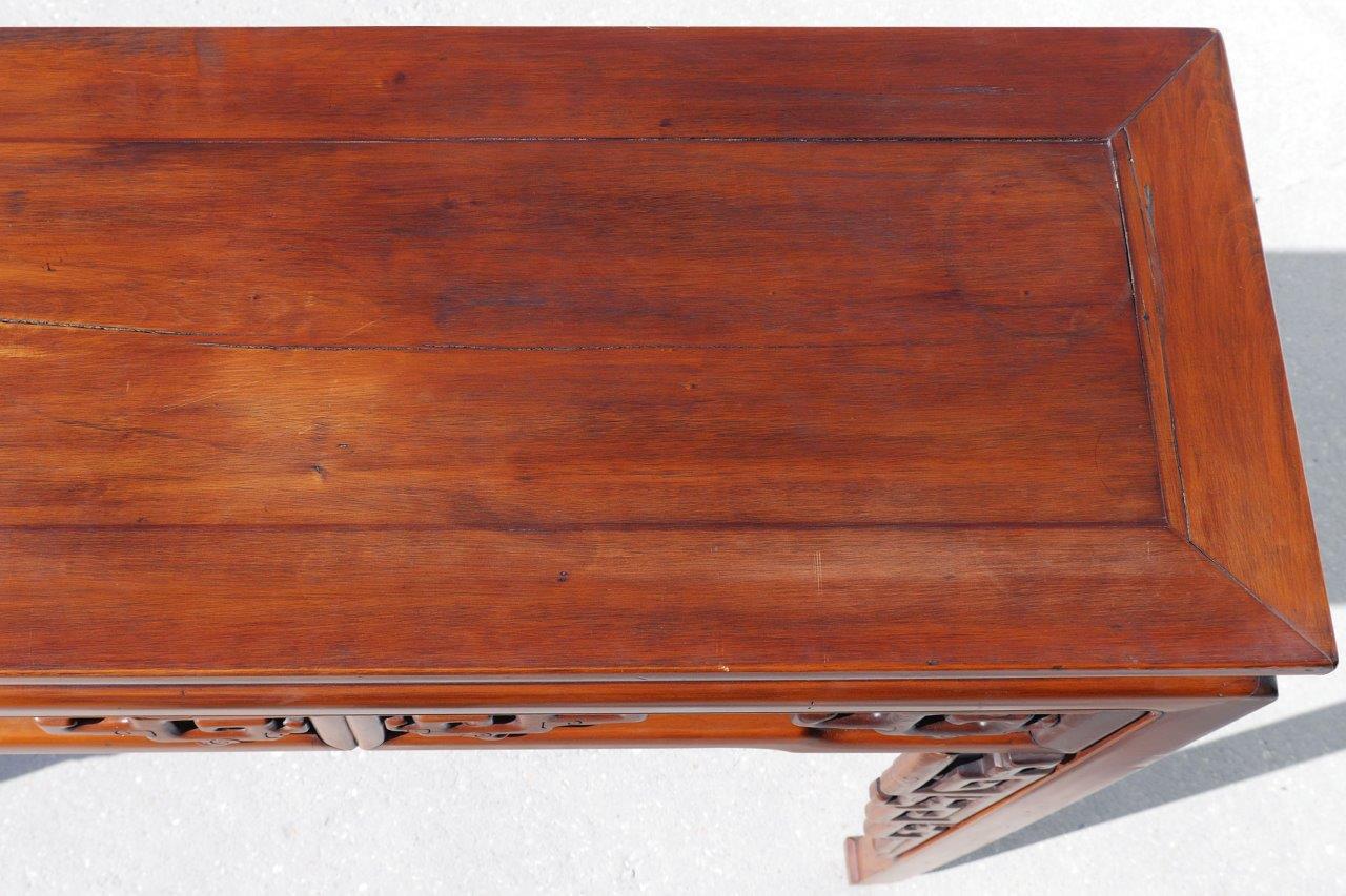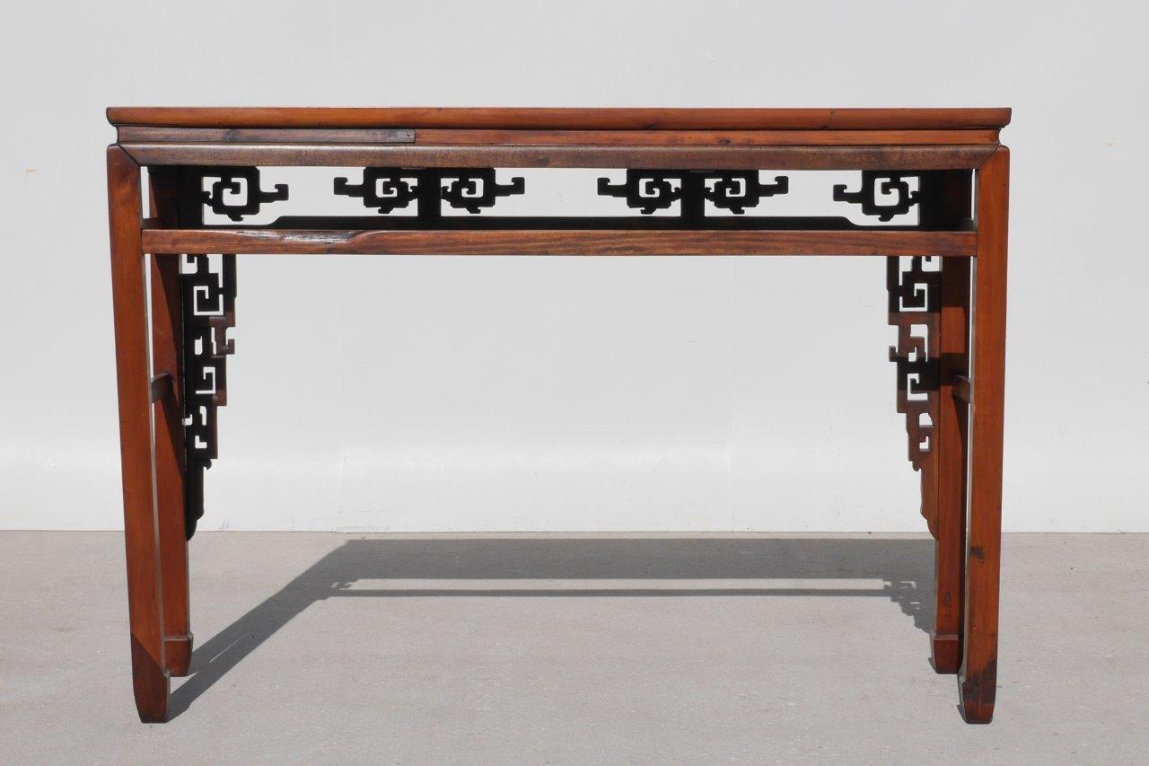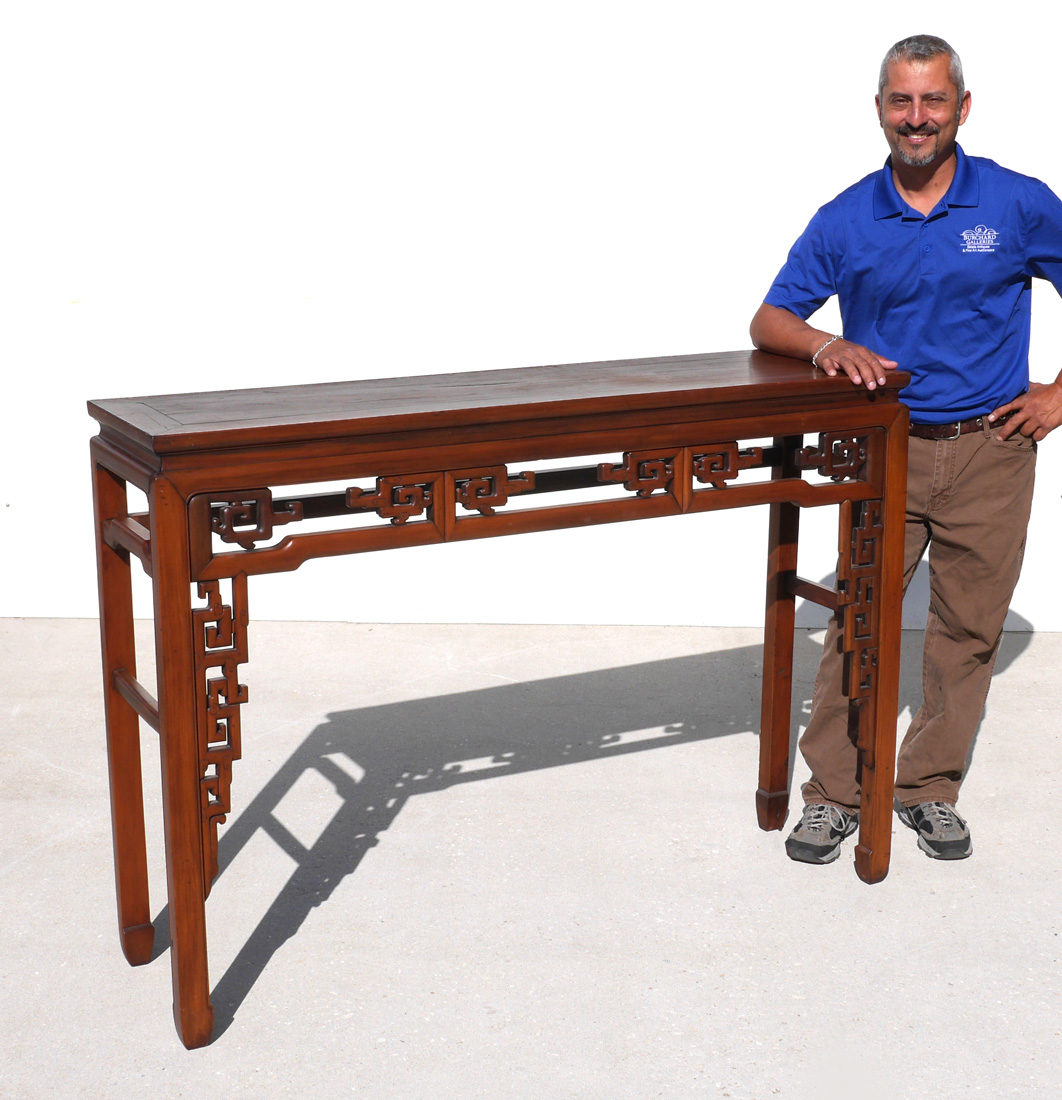 TALL CHINESE ALTER / FOYER TABLE: Rectangular top, front skirt with openwork oriental decoration, measures 40 3/4'' h. x 62 1/4'' x 18''.