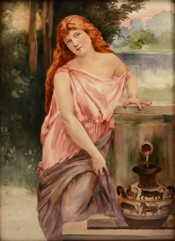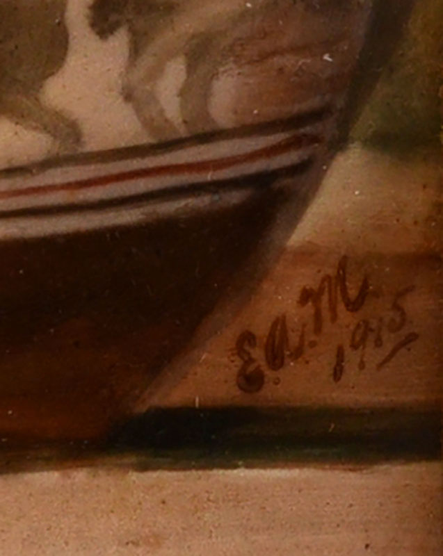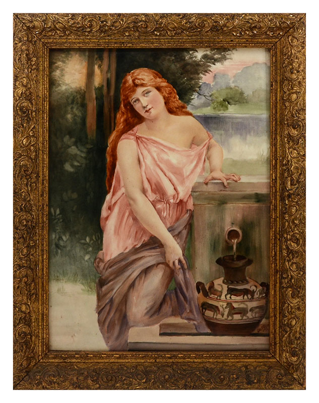 LARGE PAINTED LIMOGE PORCELAIN PLAQUE: Sight Size 16.5'' x 12.25'', Stamp mark verso, monogrammed lower right and dated 1915, 19.75'' x 15.5''.