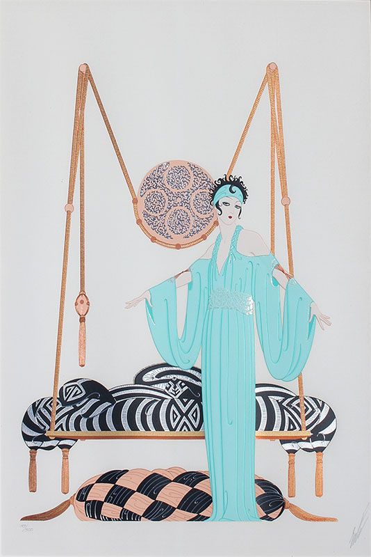 ERTE SERIGRAPH ''PILLOW SWING'': Sight size 24'' x 17'', pencil signed lower right, 149/300 lower right, custom frame and matting, 31'' x 24''.