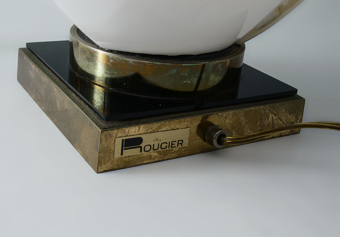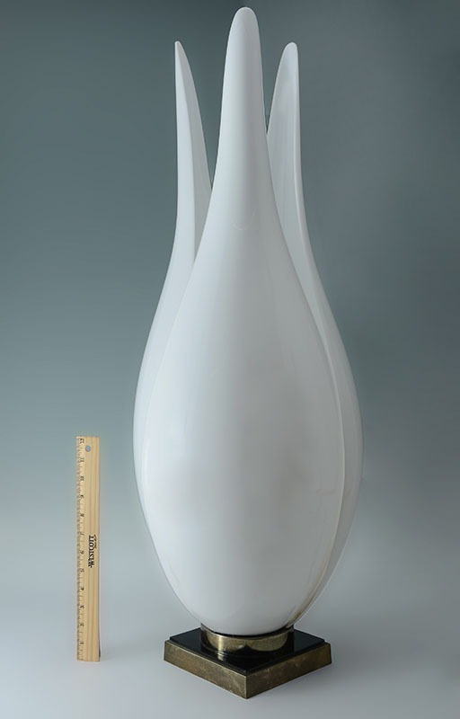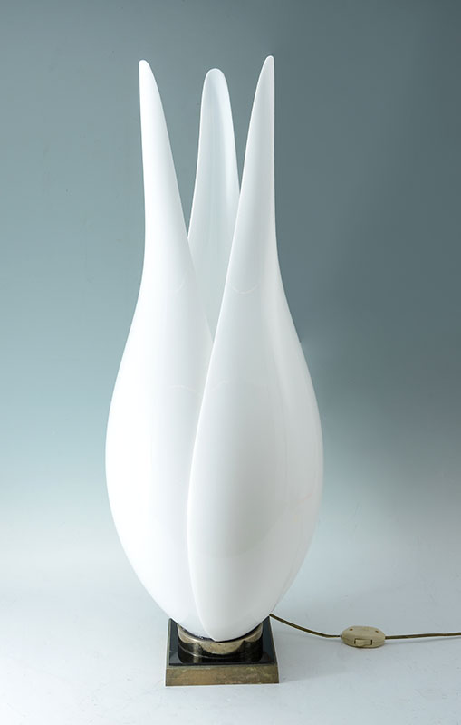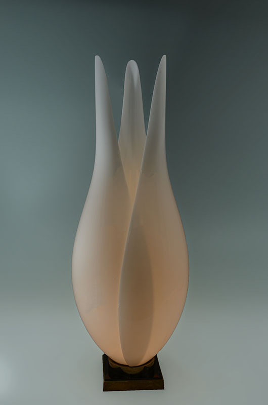 ROUGIER MID CENTURY ACRYLIC TULIP LAMP: Three acrylic petal on metal base, marked Rougier, measures 33 1/4'' h. x 11 1/2'' dia.