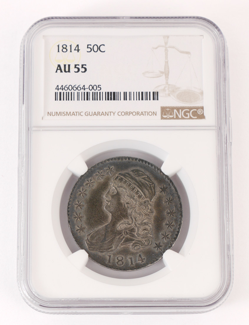 1814 CAPPED BUST HALF DOLLAR NGC AU55: Recently slabbed and graded NGC AU55.