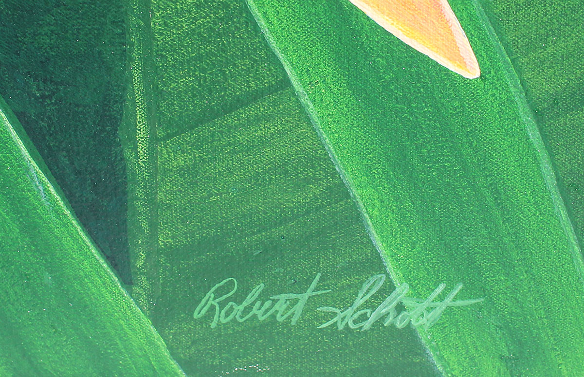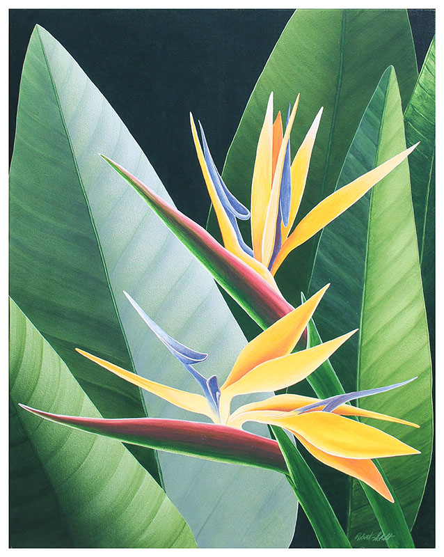 SCHOTT, Robert, (American, 20th/21st Century): Bird of Paradise, Oil/Canvas, 60'' x 40'', signed lower right, stretch over wood, unframed. Robert Schott uses nature as inspiration for his artwork.