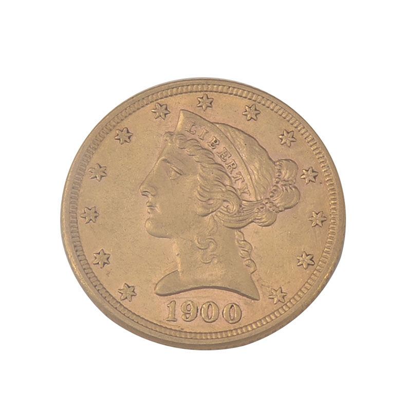 1900 US GOLD COIN LIBERTY HEAD $5 HALF EAGLE: Ungraded, Approx. 8.3 grams .900 gold.