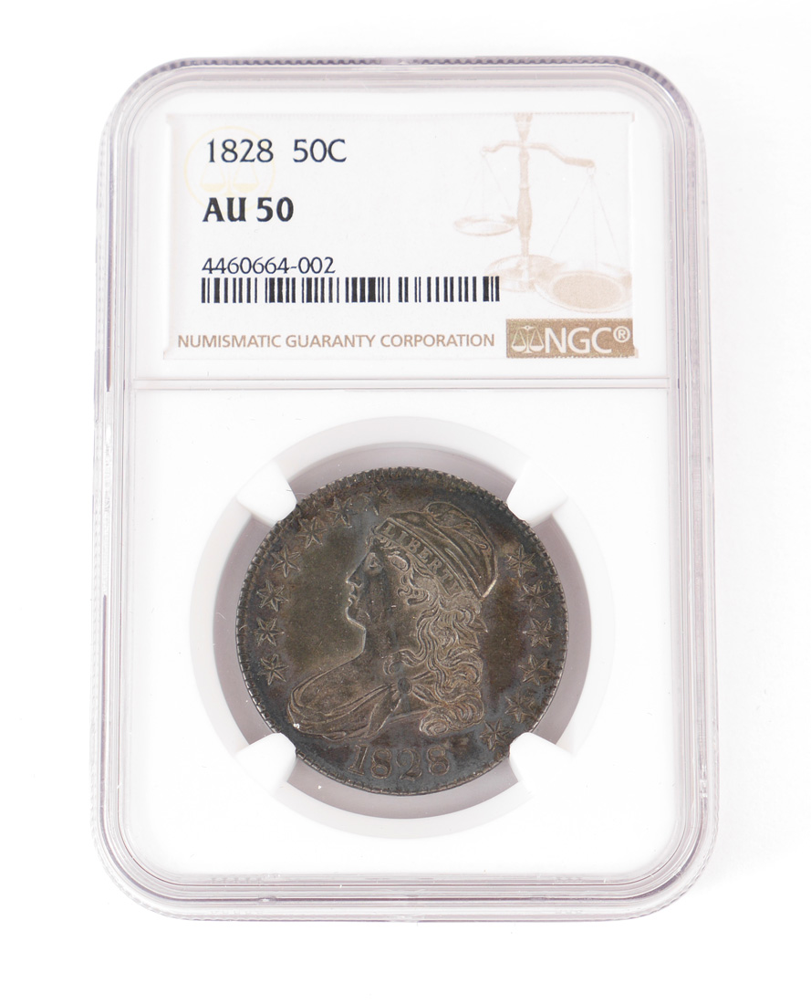 1828 CAPPED BUST HALF DOLLAR NGC AU50: Recently graded and slabbed by NGC AU50.