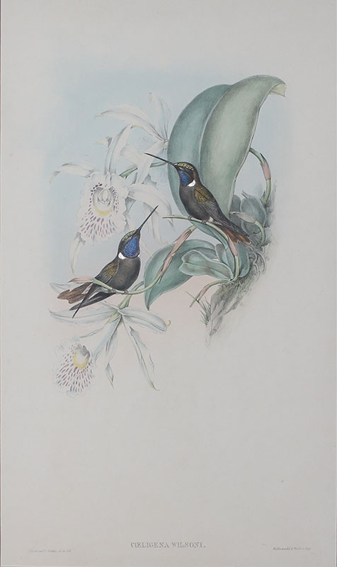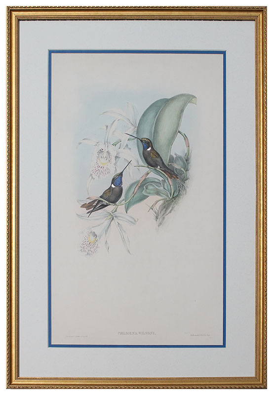 GOULD HUMMINGBIRD LITHOGRAPH: Sight Size 20'' x 12'', framed, 26'' x 18''.