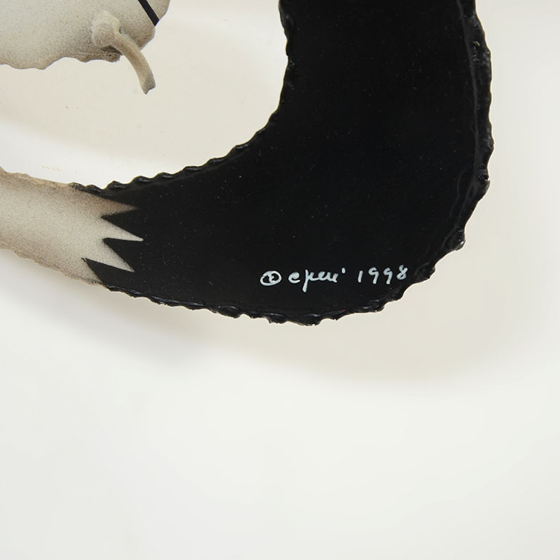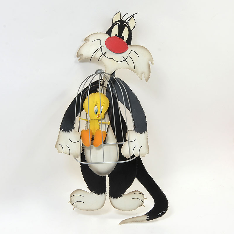 CURTIS JERE METAL SCULPTURE SILVESTER AND TWEETY: ''I Taw I Taw'', Welded Metal, 27'' H, signed and dated 1998.