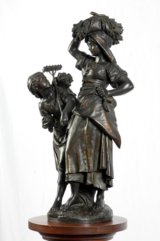 MOREAU, Mathurin, (French, 1822-1912): ''Le Retour de la Maison'', Bronze, signed, 33'' X 14'', signed.
