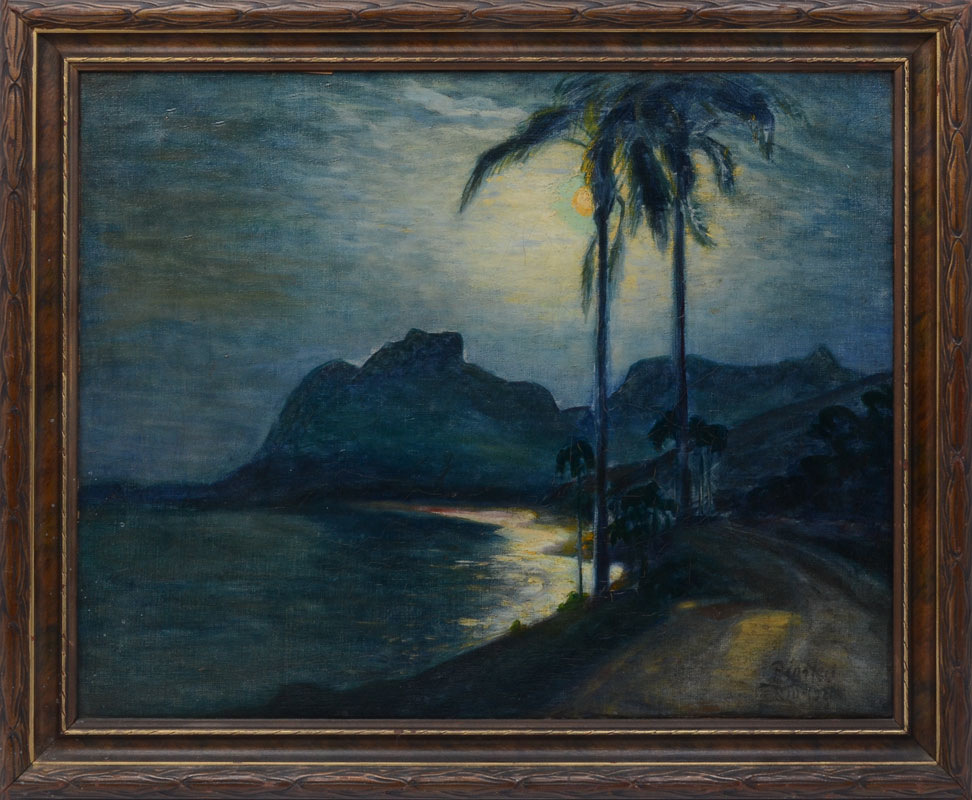 EARLY 20TH C. NOCTURNAL SHORELINE PAINTING OF RIO, 1926: Oil/Canvas, 19.5'' x 23.75'', dated lower right, framed, 24'' x 28''.