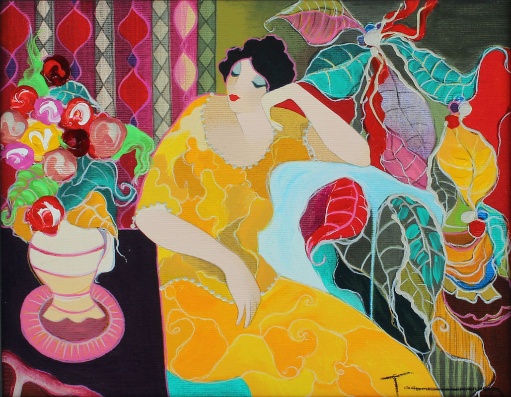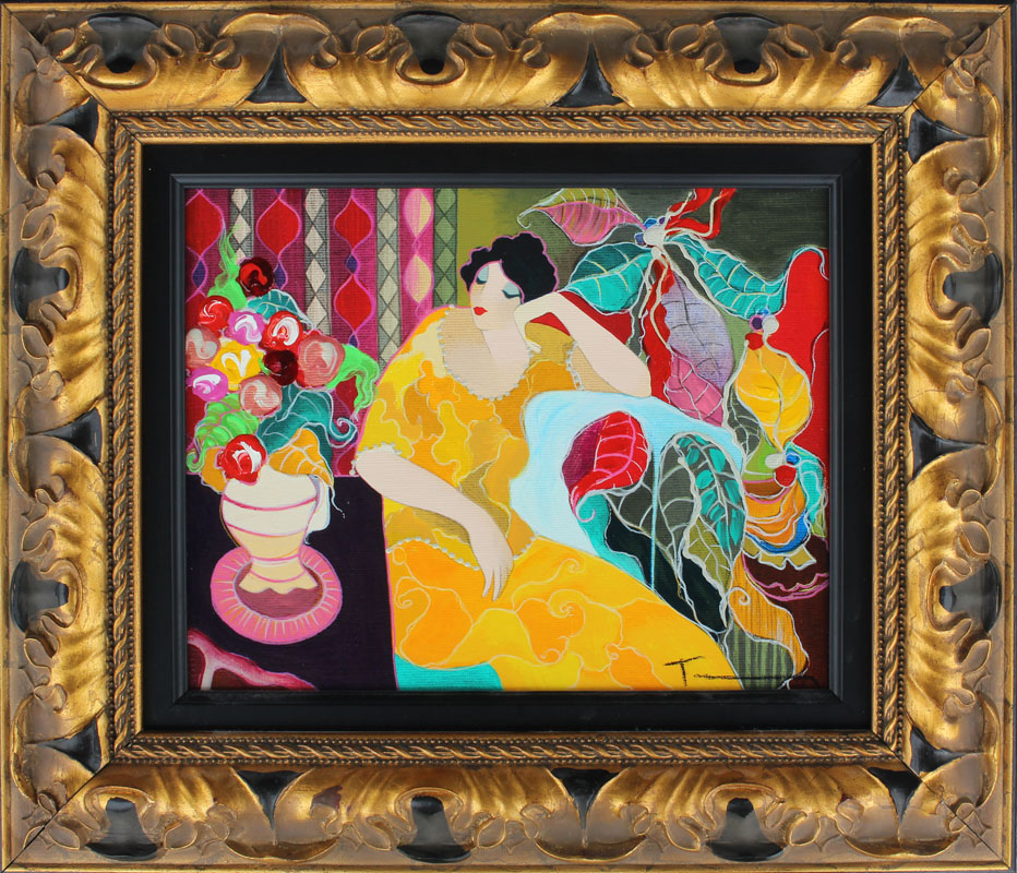 ITZCHAK TARKAY EMBELLISHED SERIGRAPH ON CANVAS, ''RADIANT'': 9.5'' x 12'', signed lower right, numbered verso 114/350, provenance affixed to canvas, framed, 16'' x 18''.