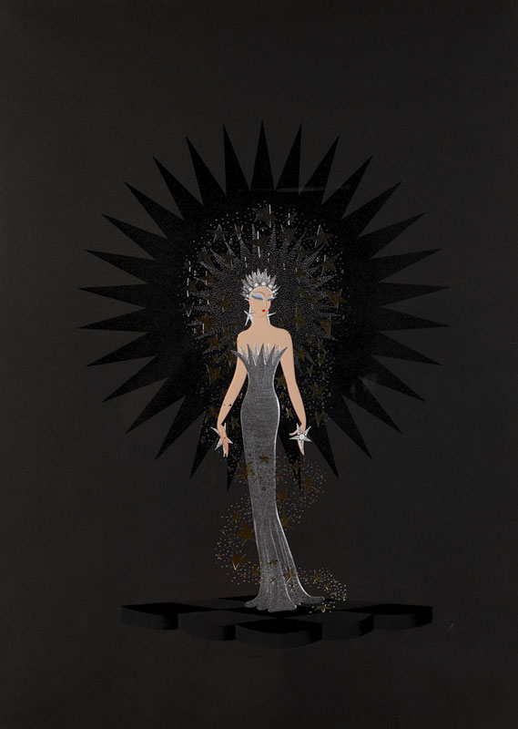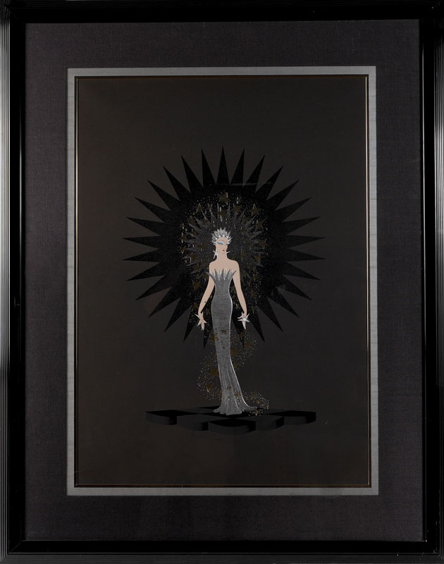 ERTE ''STARSTRUCK'' SERIGRAPH: Sight size 31'' x 22'', pencil signed lower right, numbered lower left 89/300, elaborate black lacquer frame and matting, 43.5'' x 34.25''.