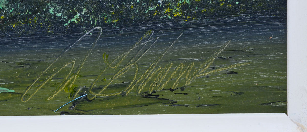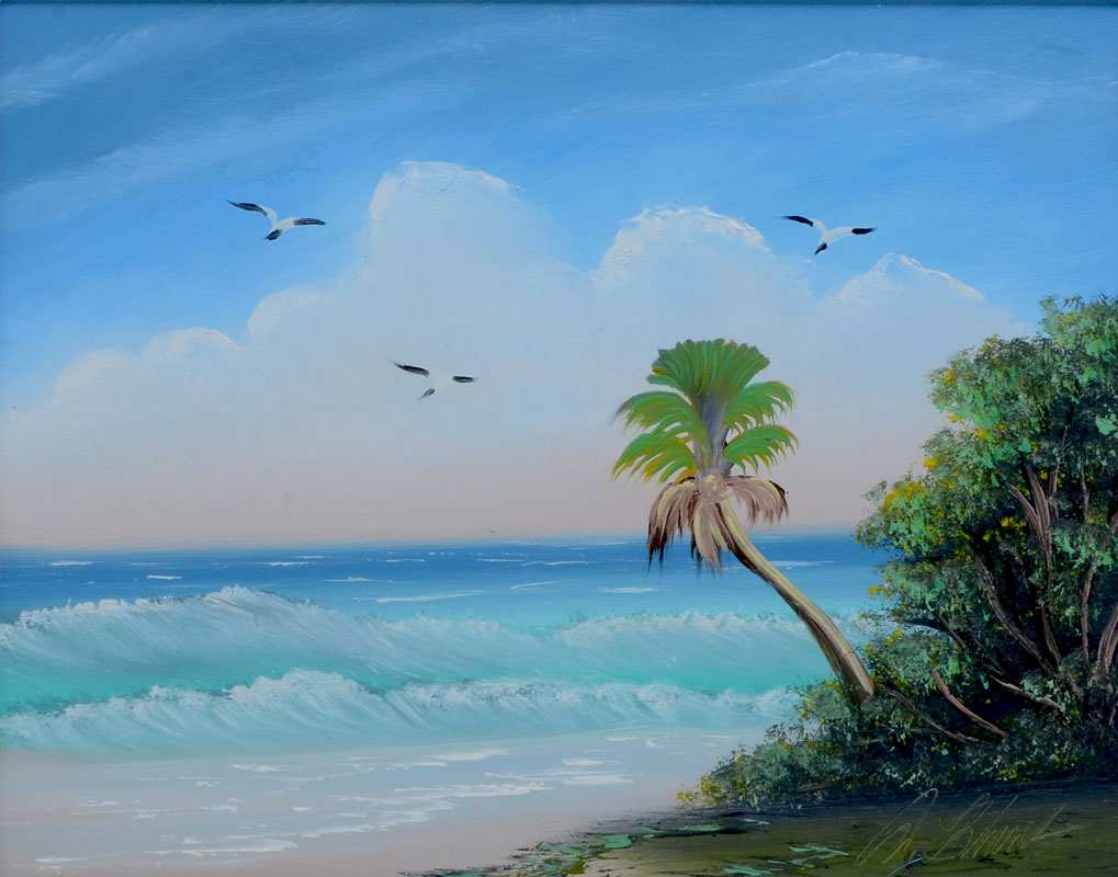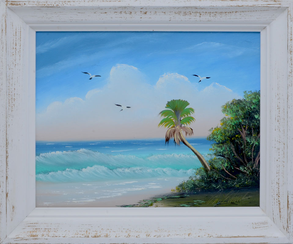 BLACK, Al, (American, 20th Century): Florida Highwaymen beach coastal scene with trees and birds, Oil/Masonite, signed lower right, 14'' x 18'', framed 17 1/2'' x 21 1/2''.