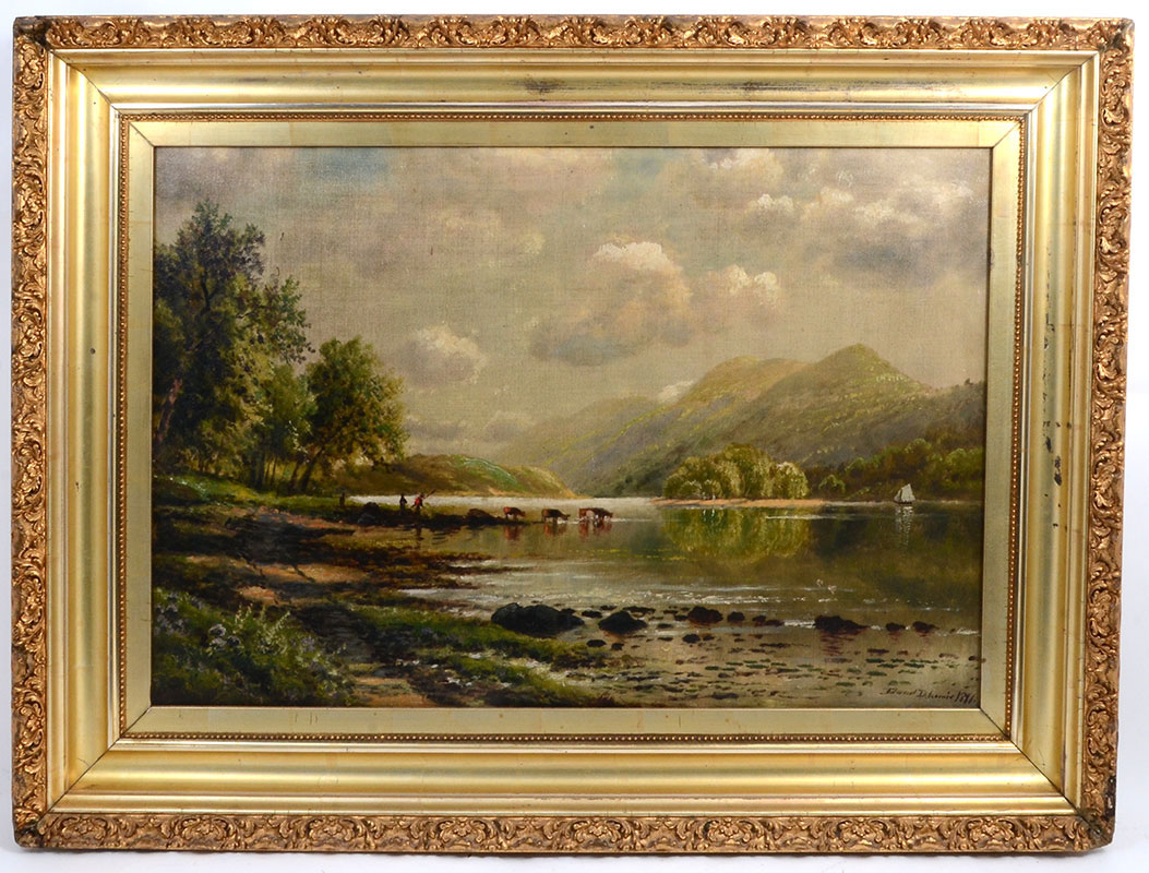LEWIS, Edmund Darch, (American, 1835-1910): Cows Watering on the Susquehanna, Oil/Canvas, 20'' x 30'', signed lower right and dated 1891, framed, 28'' x 38''.