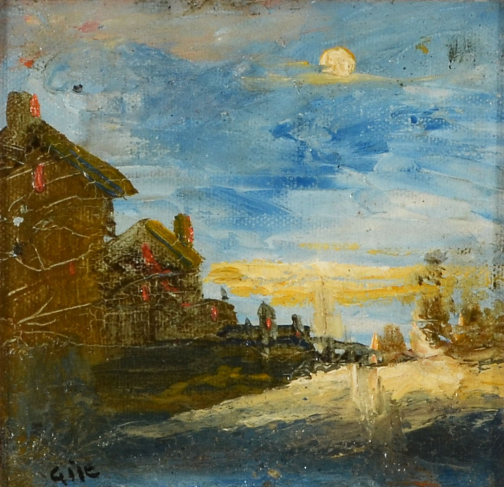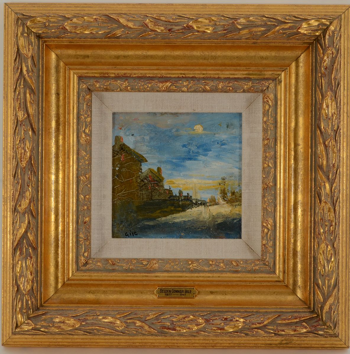 GILE, Selden, (American, 1877-1947): Nocturnal Village Landscape, Oil/Canvasboard, 5'' x 5'', signed lower left, framed, 12.25'' x 12.25''.
