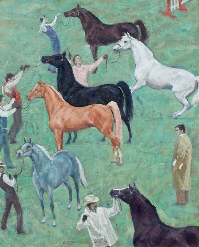 PROUT, George (American, 1913-2016): ''Arabian Line Up'', Oil/Canvas, 30'' x 24'' signed lower mid margin, titled on the stretcher verso, framed 34'' x 28''.