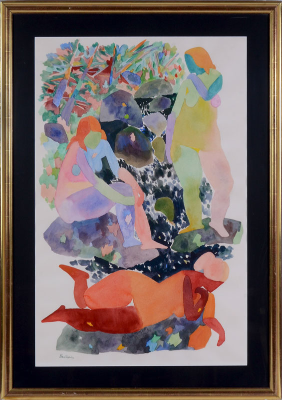 PRESTOPINO, Gregorio, (American, 1907-1984): 3 Abstract Female Nudes, Watercolor, sight size 38.5'' x 26'', signed lower left, framed, 47.5'' x 35''.