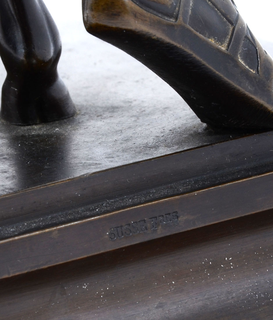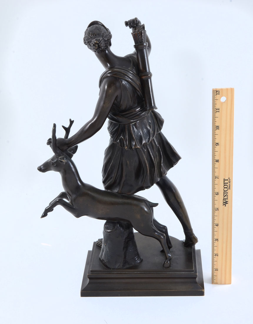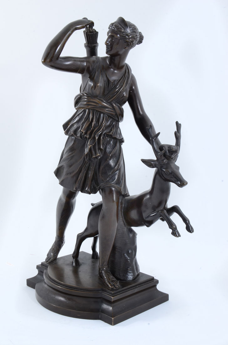 DIANA THE HUNTRESS BRONZE SUSSE FRERES FOUNDRY: 19th C., 16'' h., stamped foundry mark to the base.