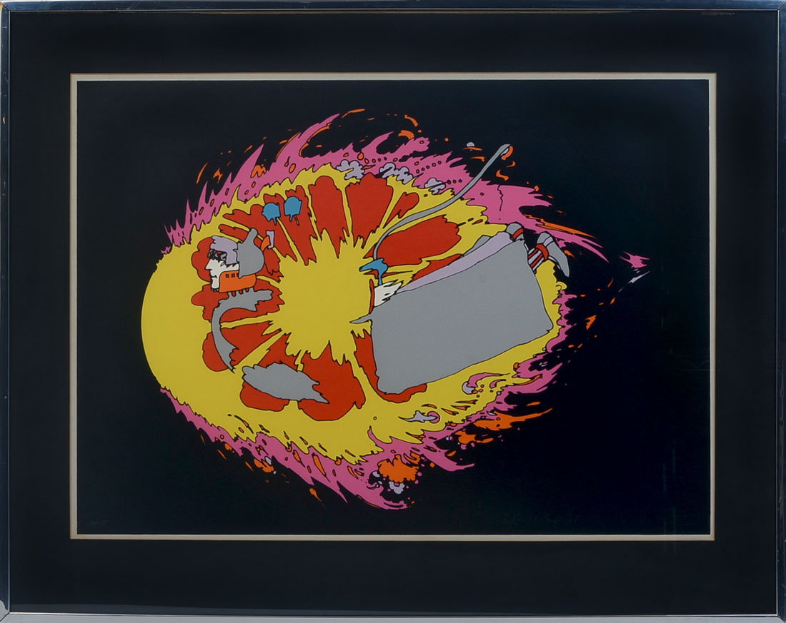 RARE PETER MAX SERIGRAPH 1971 ''TRAVELING IN THE LIGHT'' D/P III: Sight size 21.5'' x 29.5'', pencil signed lower right Zen Max'', blindstamp, numbered lower left D/P III, blindstamp, framed, 29'' x 36''.