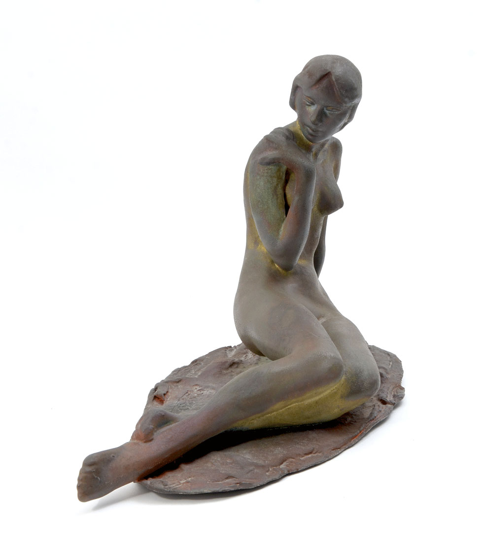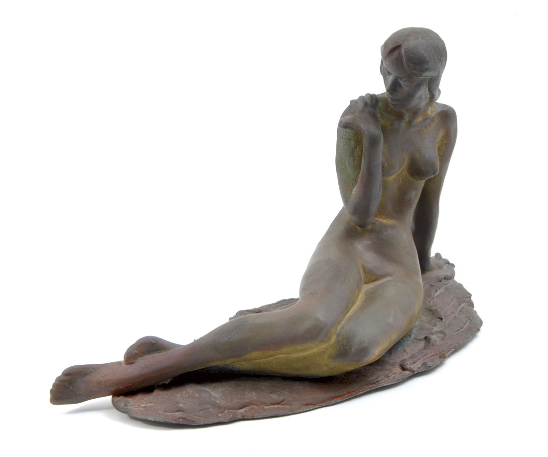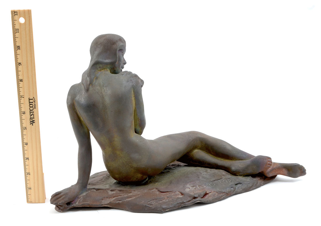 GEORGE TUDZAROV RAKU RECLINING NUDE: 9.5'' x 16.75'', signed, dated '92.