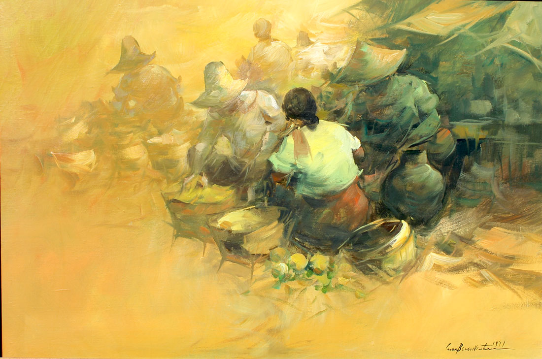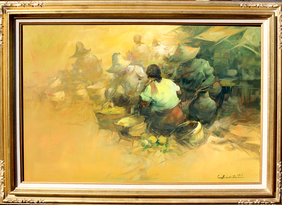 BUENAVENTURA y ESPINOSA, Cesar, (Filipino, 1919-1983): Market Scene, Oil/Canvas, 24'' x 36'', signed lower right and dated 1971, framed, 32'' x 42''.