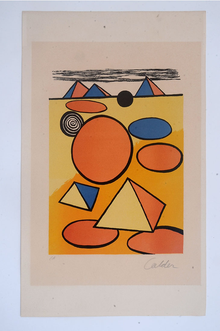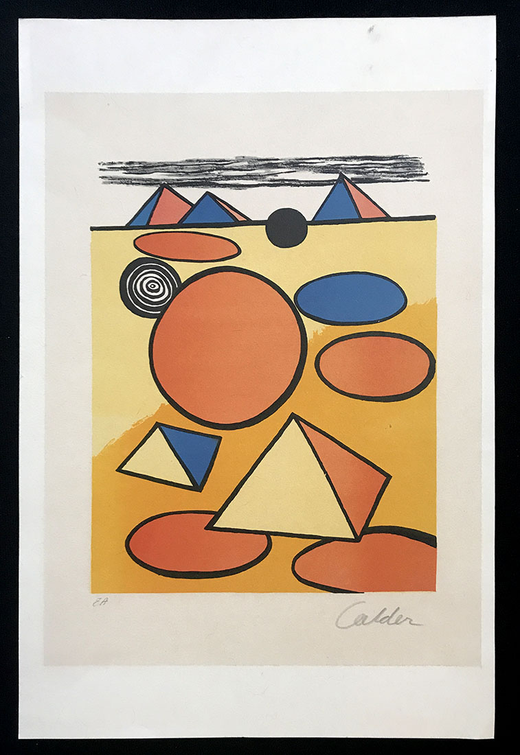 CALDER, Alexander, (American, 1898-1976): ''La Petite Pyramids'', Color Lithograph, 20'' x 13'', pencil signed lower right, marked EA lower left, unframed.