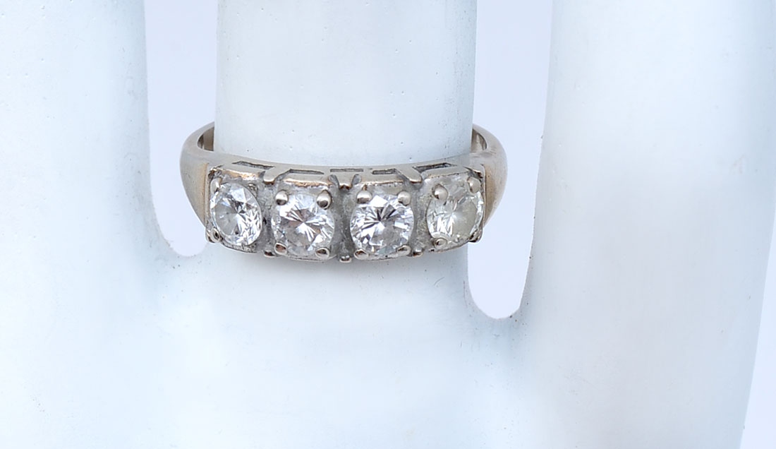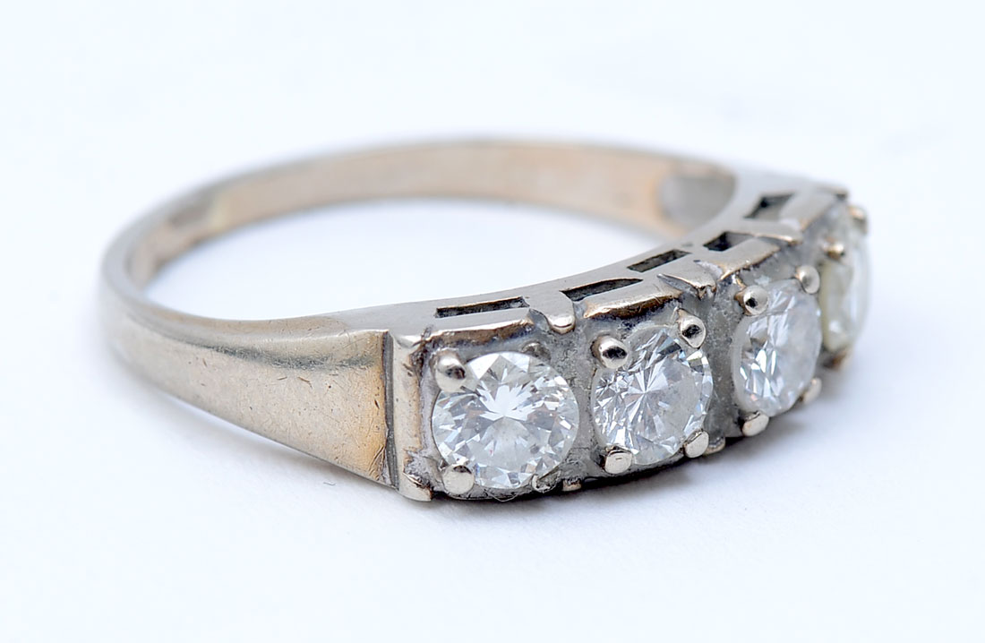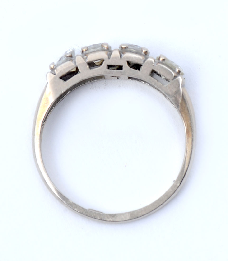 14K .75 CTW DIAMOND BAND: 14K yellow gold band contains (4) round brilliant cut diamonds. WEIGHT: .75 Ct. Approx. Rated SI1-SI2 in clarity and H-I in color. Weight: 1.9 grams. Size: 5