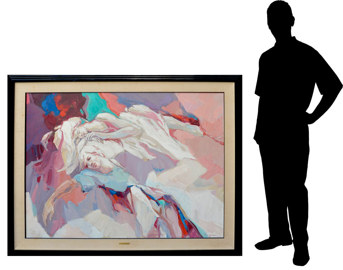 ROSENZWEIG, Irving, (American, 1915- ): Couple Resting on the Bed, Oil/Canvas, sight size 40'' x 54'', signed, framed, 50'' x 64''.