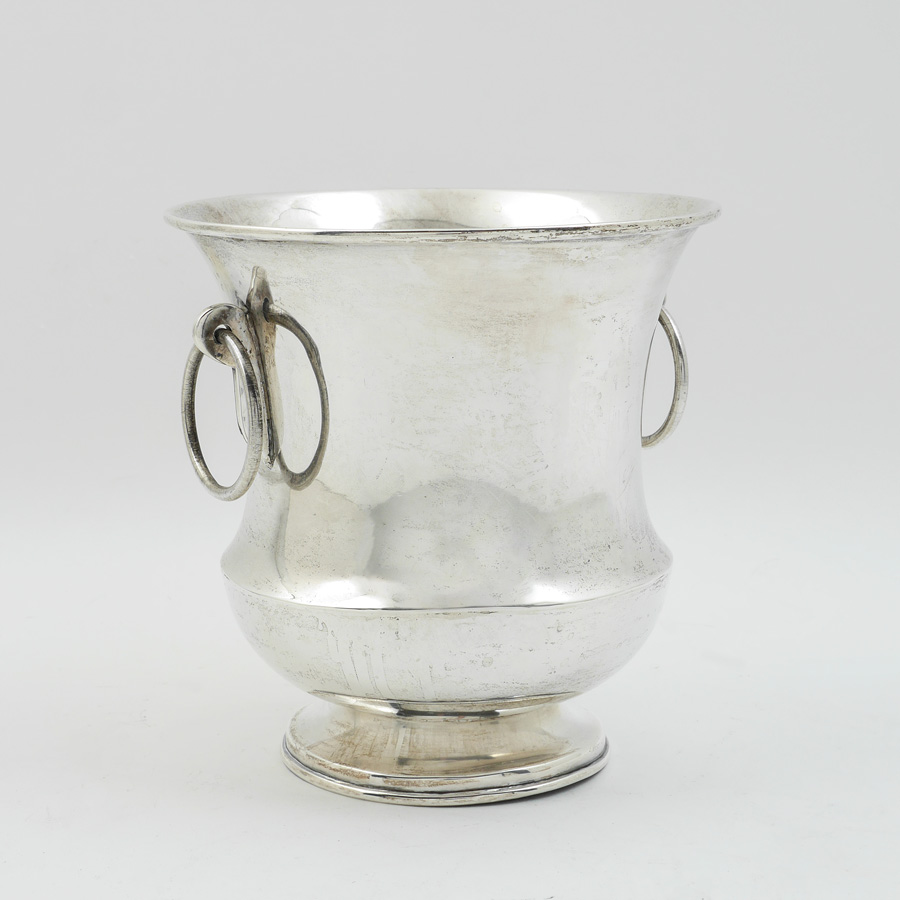 TANE MEXICAN STERLING SILVER ICE BUCKET: Double ring handle sterling ice / champagne bucket well marked, ''Tane, Sterling, 925, J.V.P., Hecho en Mexico'' and eagle 1 mark. 7 1/8'' h. x 7 1/4'', approx. 25.2 troy oz.