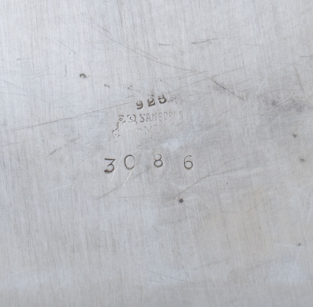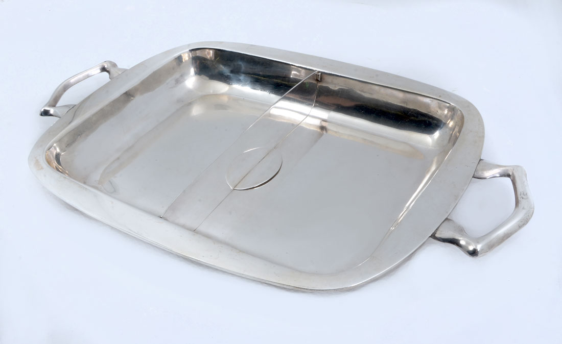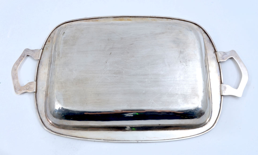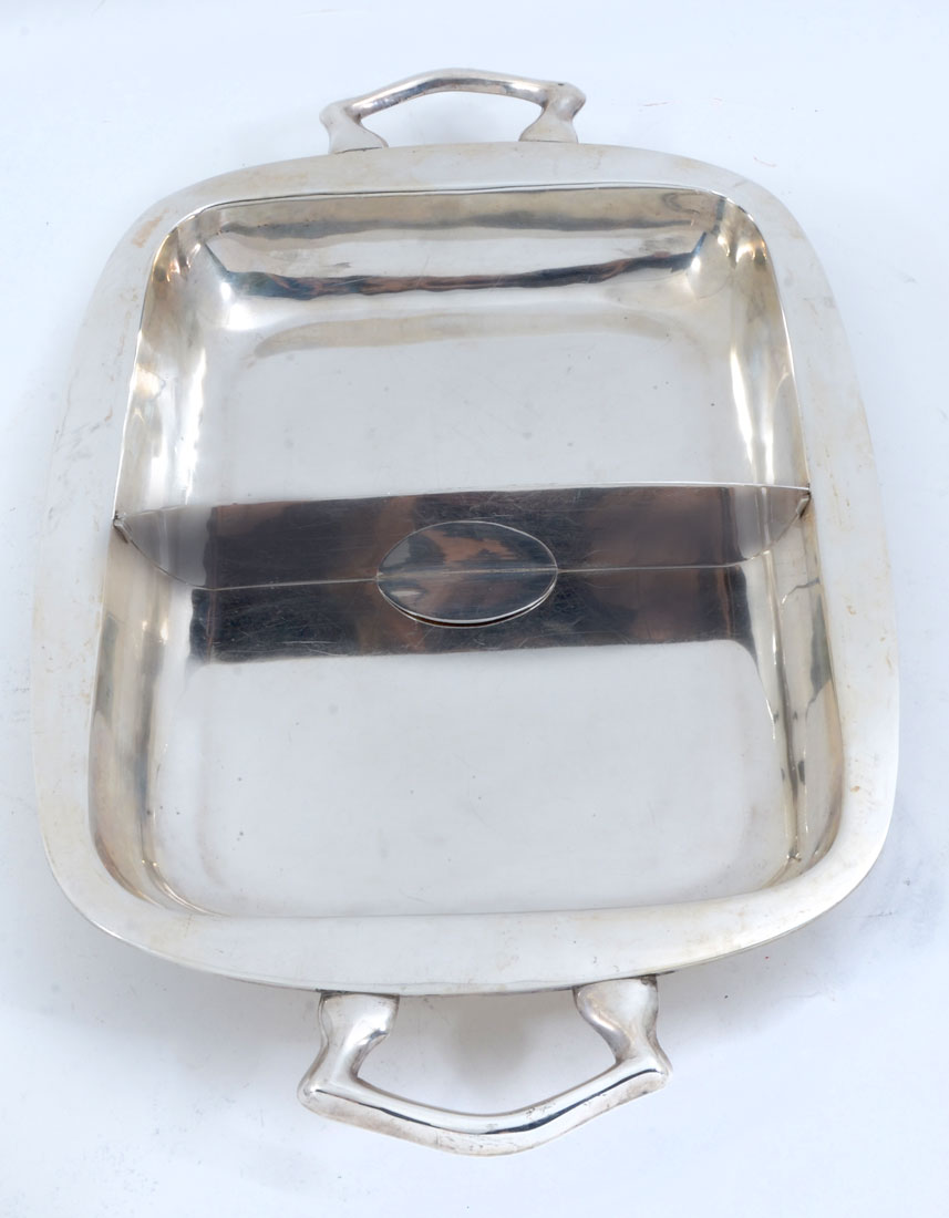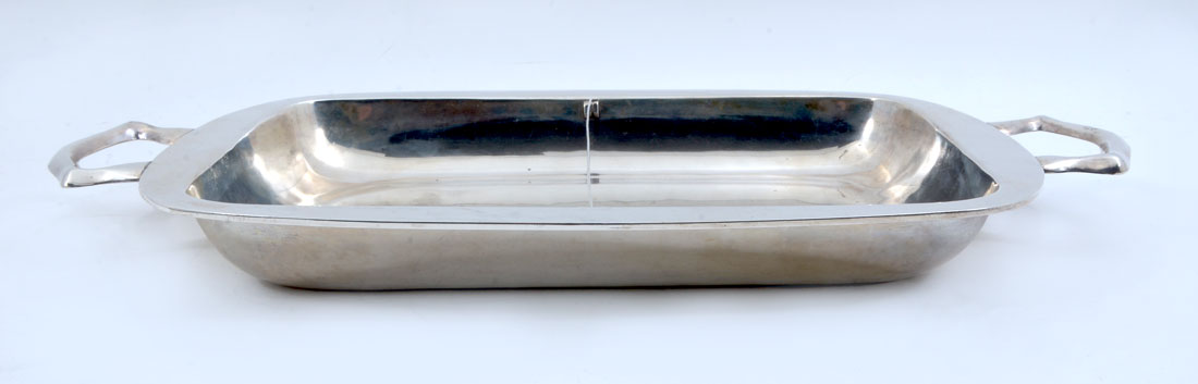 SANBORNS MEXICAN STERLING SILVER DIVIDED TRAY: 2 handle deep tray with removable divider, partial Sanborns mark on base, 18 1/2'' x 11'', approx. 41.1 troy oz.