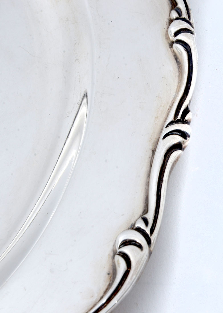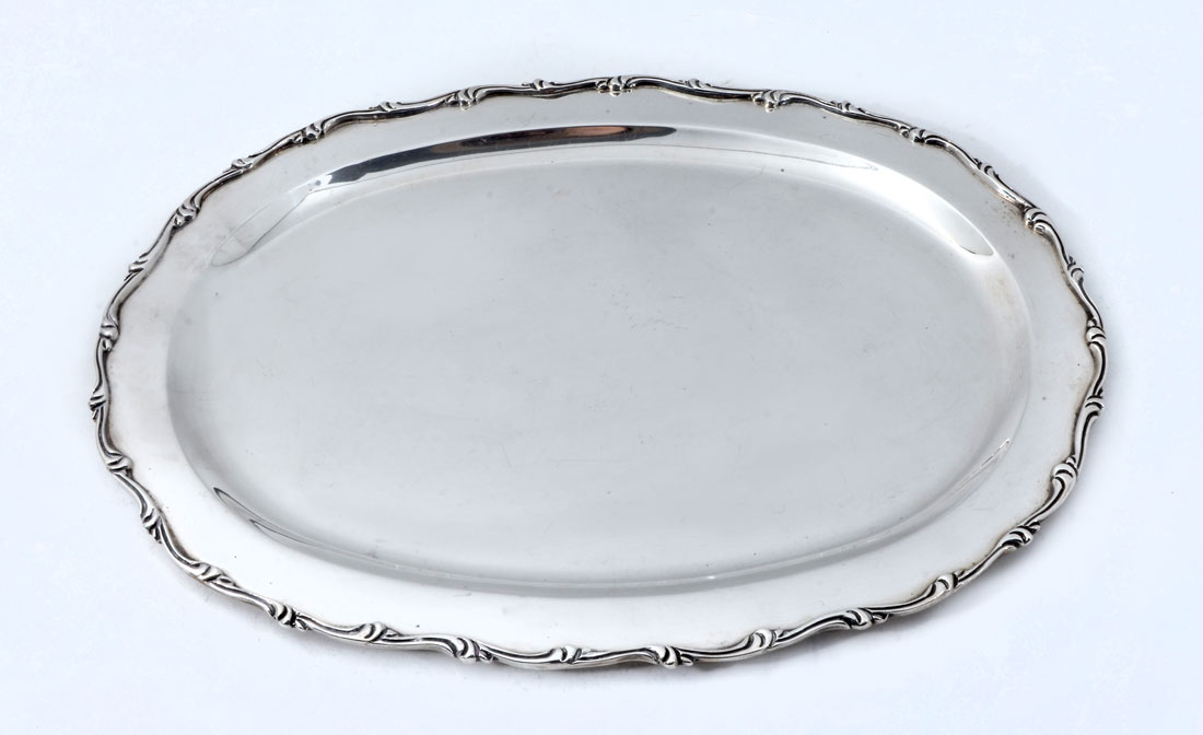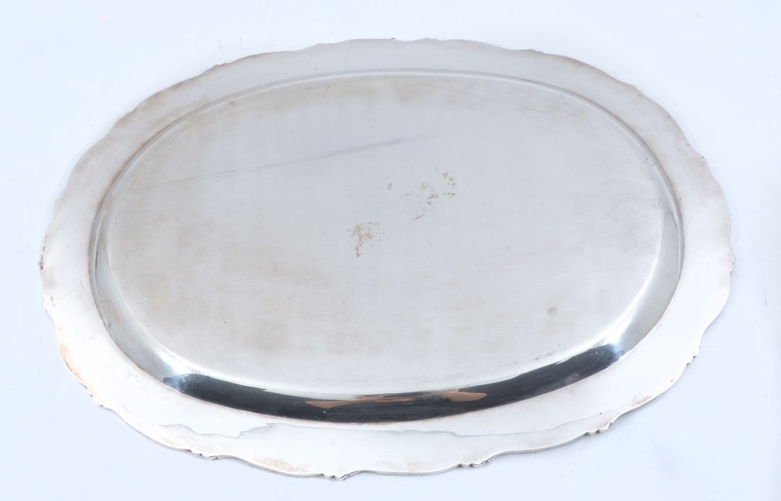 TANE MEXICAN STERLING SILVER TRAY: Oval tray with foliate scroll trim, marked with Tane Sterling marks, 16 1/2'' x 12 1/4'', approx. 37.1 troy oz.