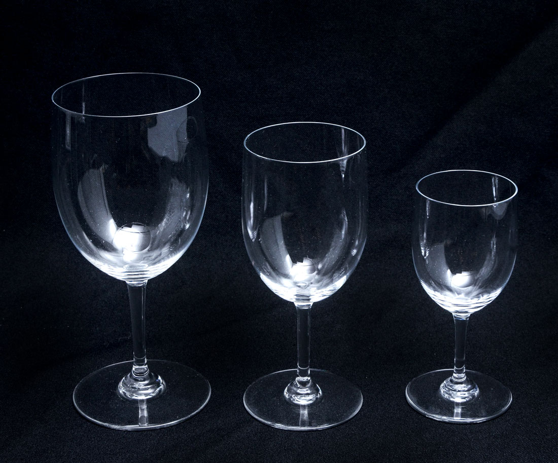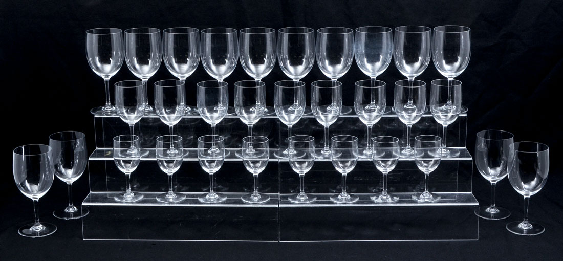31 PIECE BACCARAT CRYSTAL STEMWARE: Approx. 31 pieces total in a plain, possibly the Haut Broin (Saint Emilion) pattern, to include 14 water goblets (7 1/4''), 9 claret wine (6 1/8''), 8 cordials (5'').