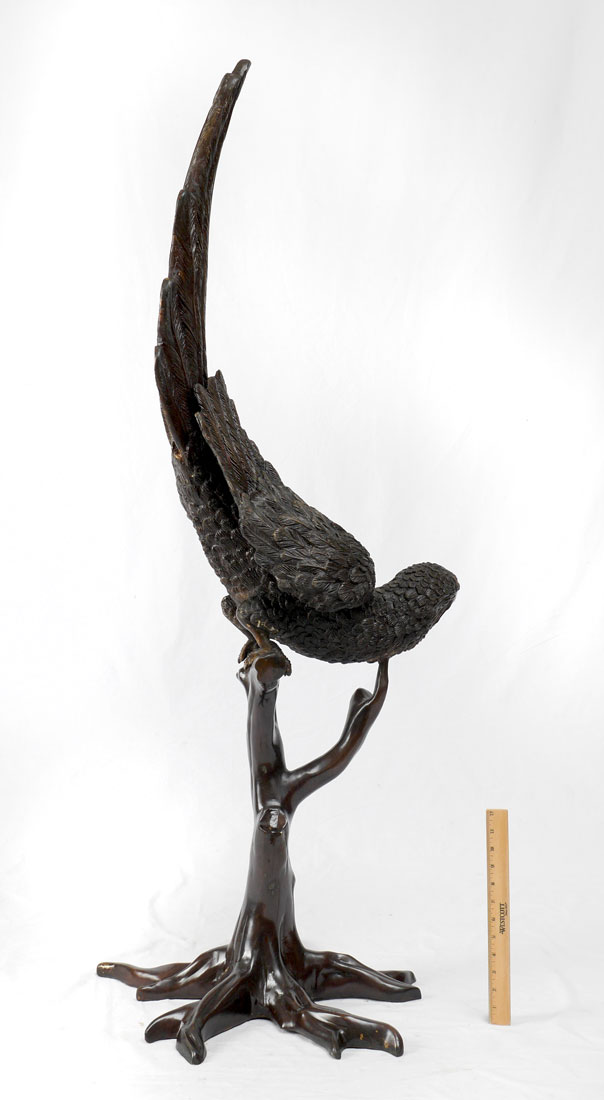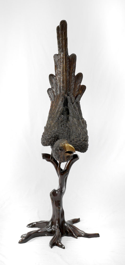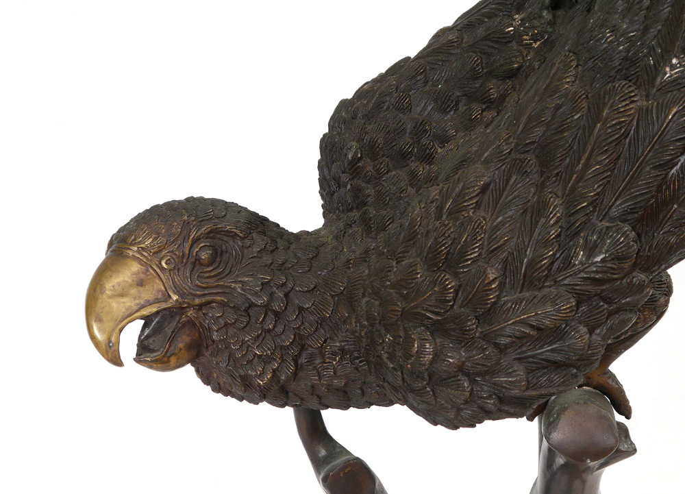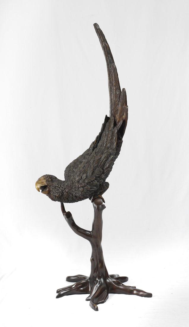 SIGNED J. MOIGNIER BRONZE PARROT: Sculpture modeled as a Macaw. Impressed J. Moignier. Measures approx. 54.5'' tall x 20'' x 20''.
