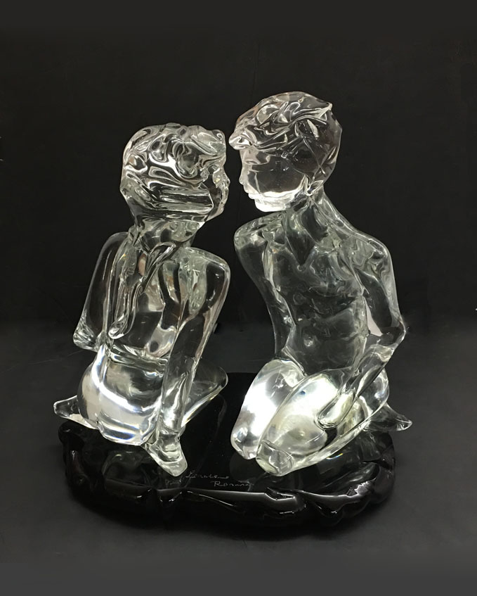 LOREDANO ROSIN MURANO GLASS SCULPTURE OF 2 LOVERS: 15.5'' H x 15'' W x 10'' D, incised signature to face.