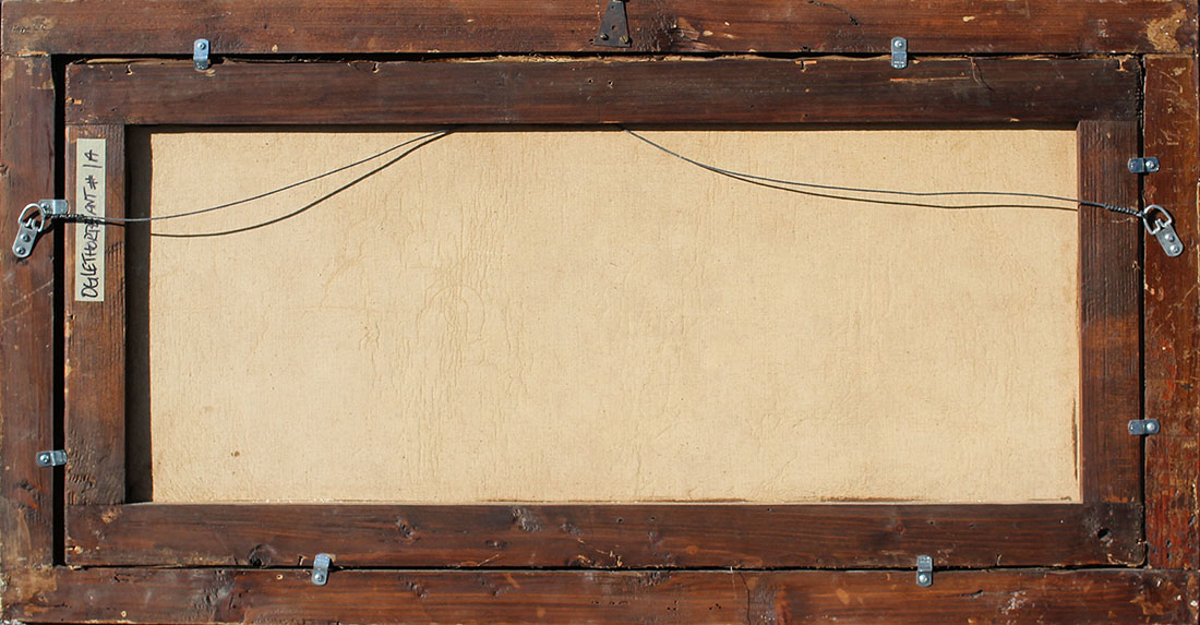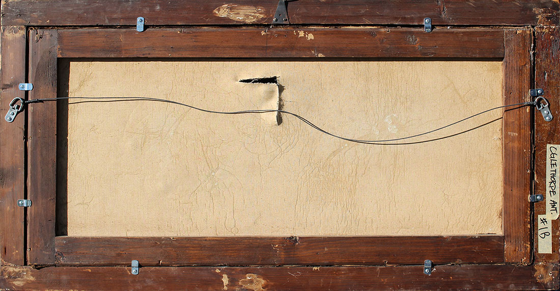CONDITION: Craquelure throughout, puncture to one canvas, frames have minor wear, sold as is.