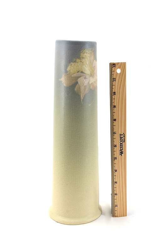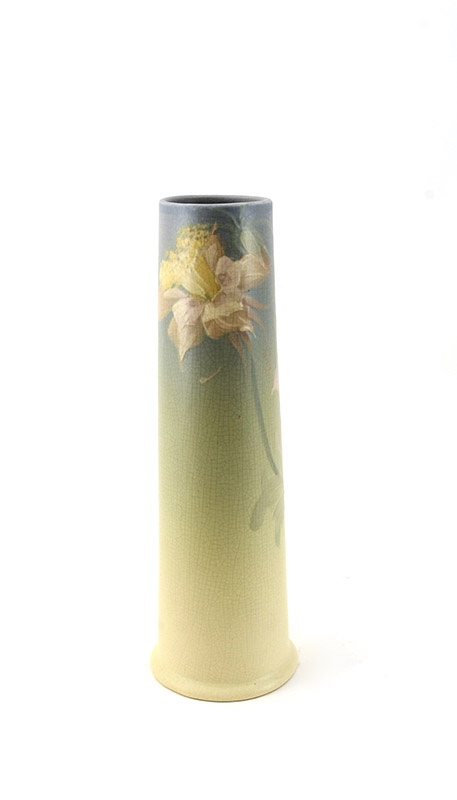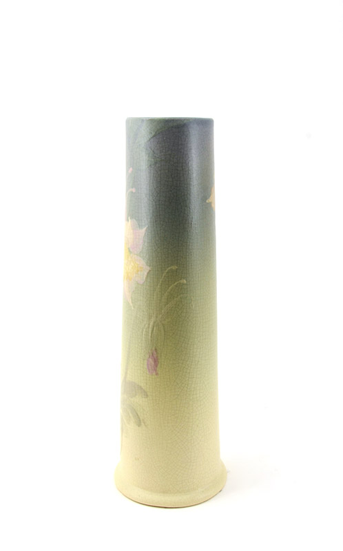 WELLER COLUMBINE HUDSON VASE: Tapered vase with muted columbine flower decoration, impressed block letter Weller on base. Overall 13 3/4'' h. x 4 1/4''.