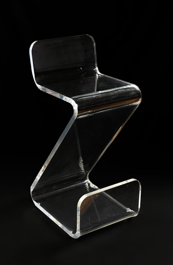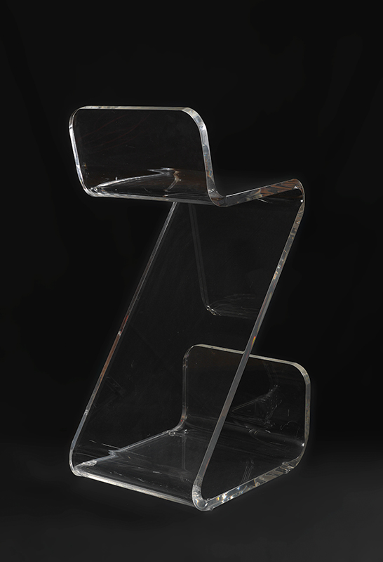 LUCITE Z FORM CHAIR: Unmarked, 37 1/2'' h. x 15 3/4'' x 20 1/4''.