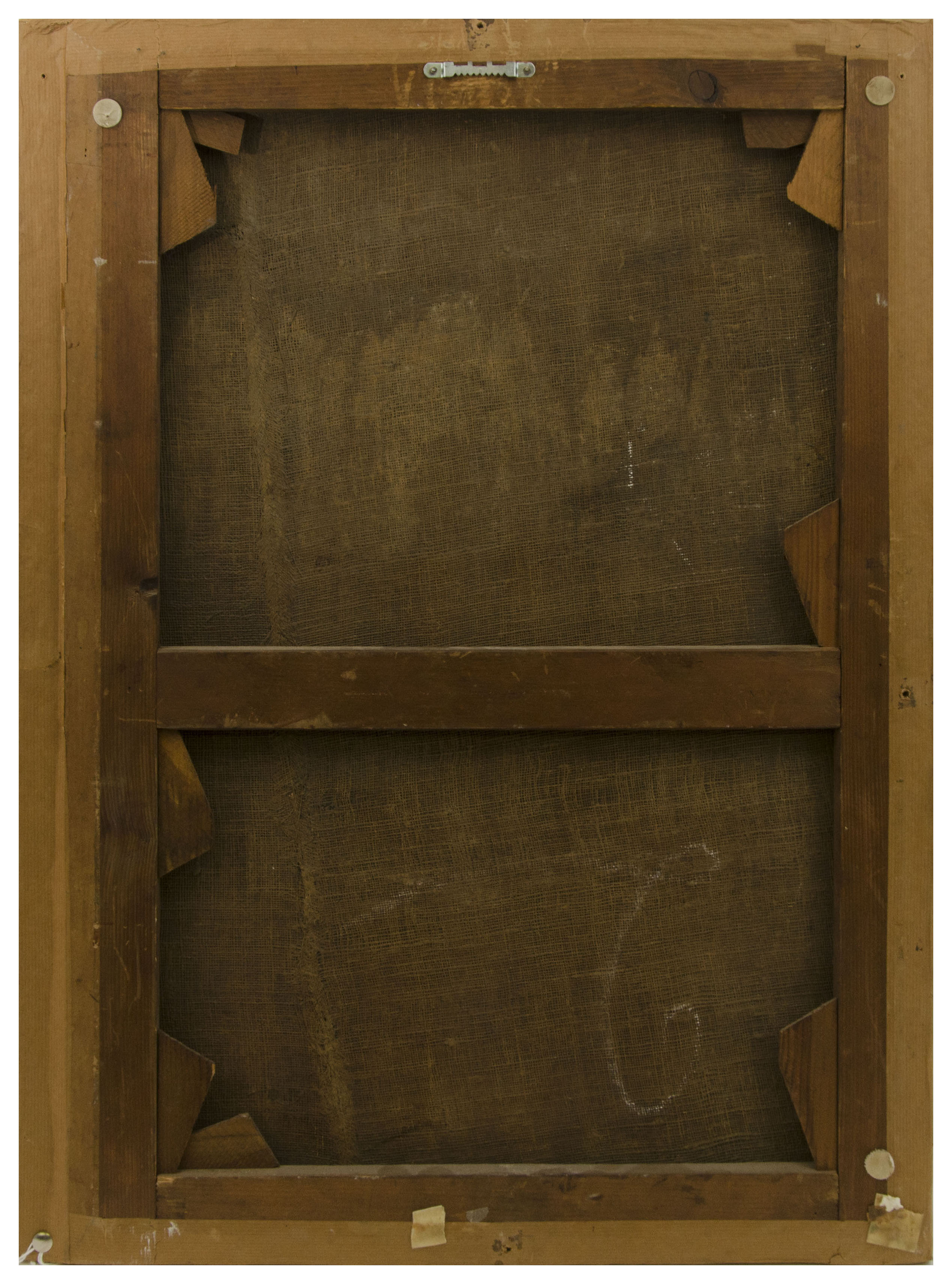 CONDITION: Scattered craquelure, abrasions, minor paint loss, minor end paint, sold as is.