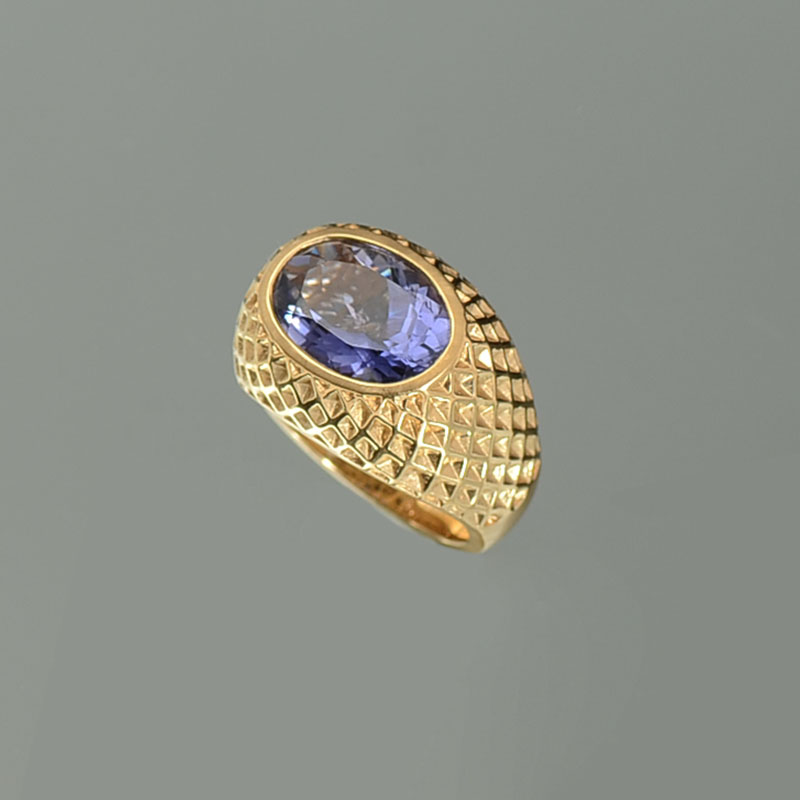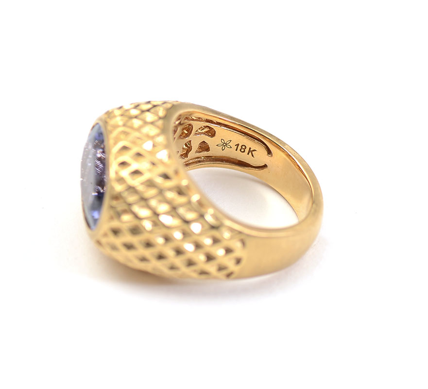 18K 3.00 CT. IOLITE DOME RING: 18K yellow gold ring contains one oval faceted iolite. Weight: 3.00 Ct. Approx. the iolite is bezel set. Weight: 14.2 grams.
