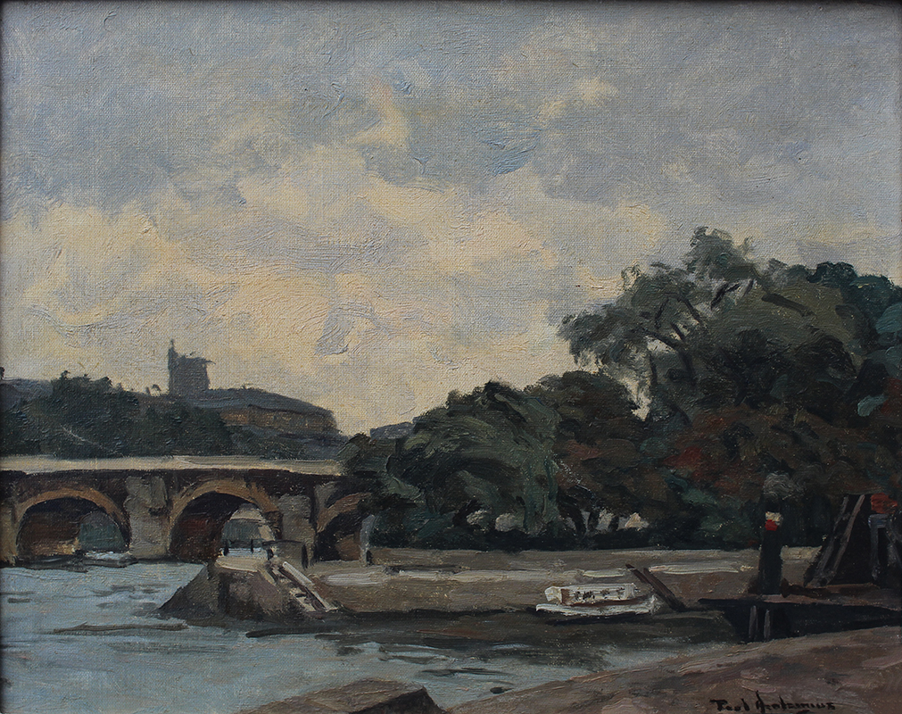 ARNTZENIUS, Paul, (European, 1883-1965): River Landscape, Oil/Canvas, 16'' x 19.5'', signed lower right, framed, 19.5'' x 23.5''. Paul Arntzenius is widely known for landscapes and still-life paintings.