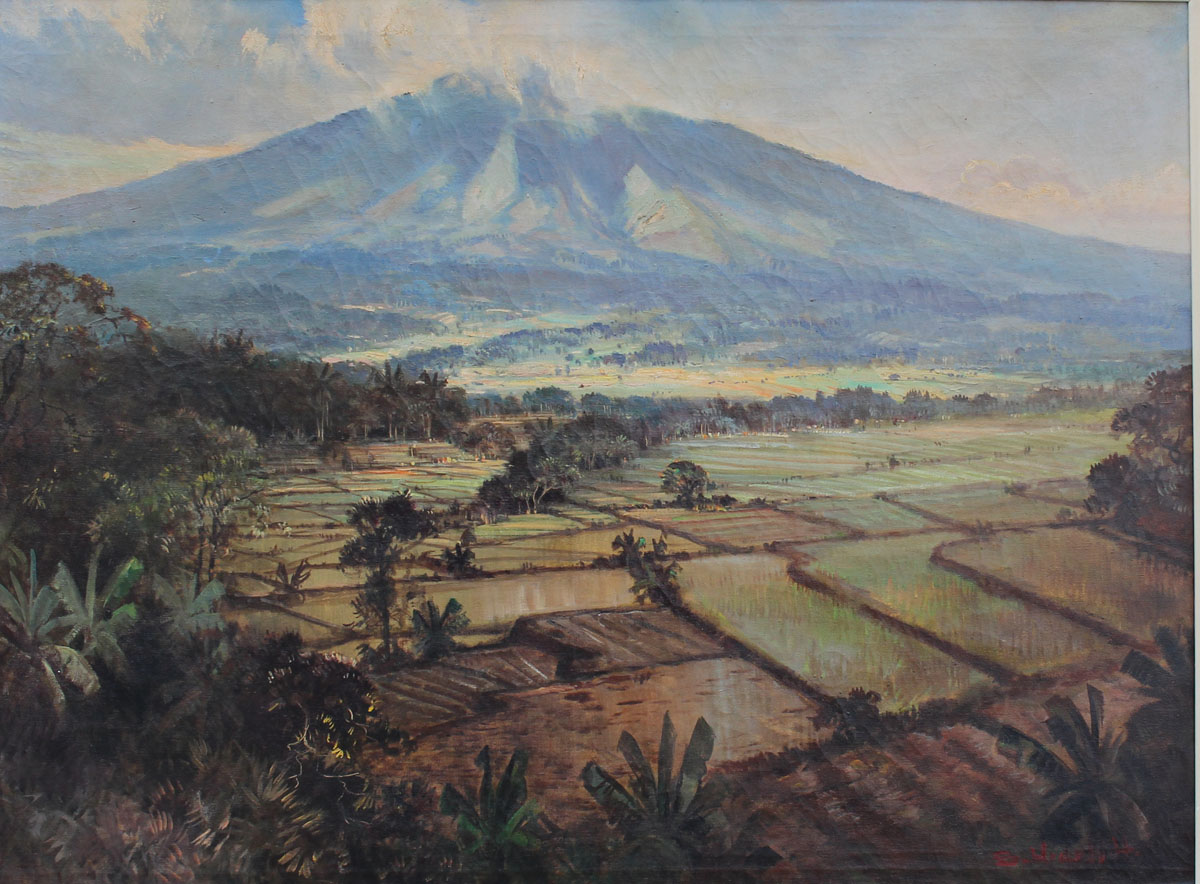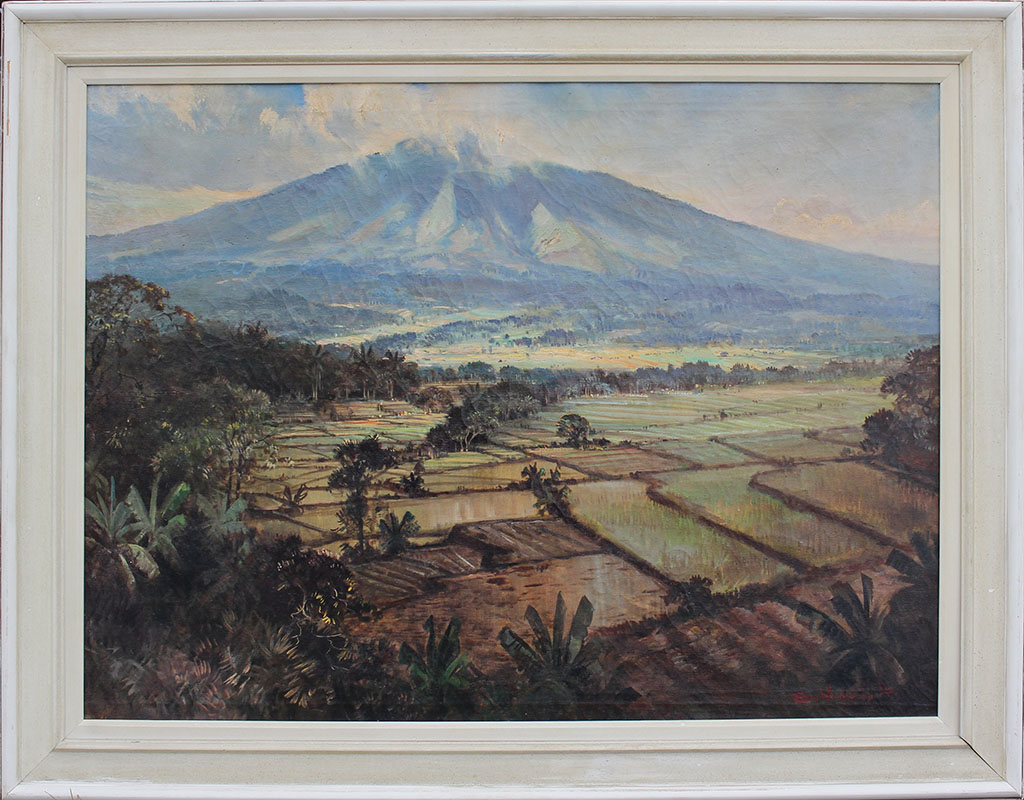 INDONESIAN RICE FIELD OIL PAINTING ABDULLAH?: Oil/Canvas, 29.75'' x 39.25'', signed lower right, framed, 37'' x 46.5''.