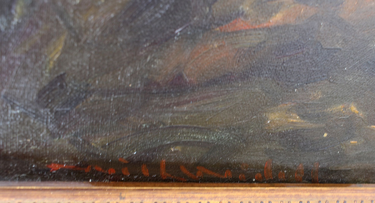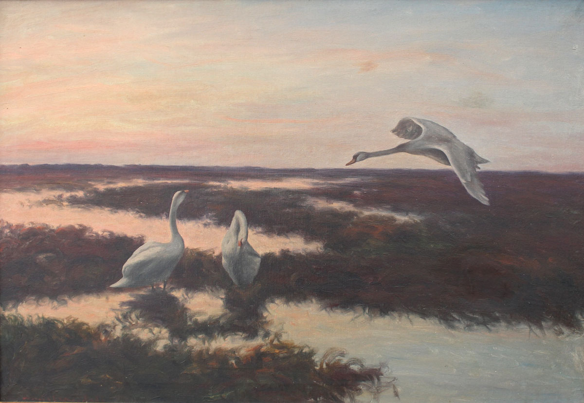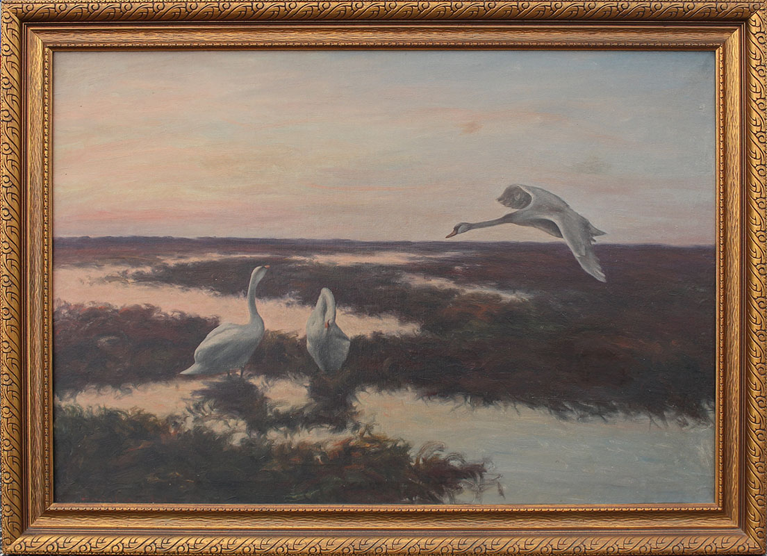 EXCEPTIONAL ILLEGIBLY SIGNED DANISH? PAINTING OF GEESE: Oil/Canvas, 27'' x 39.25'', signed lower left along margin, framed, 32.5'' x 44.5''.