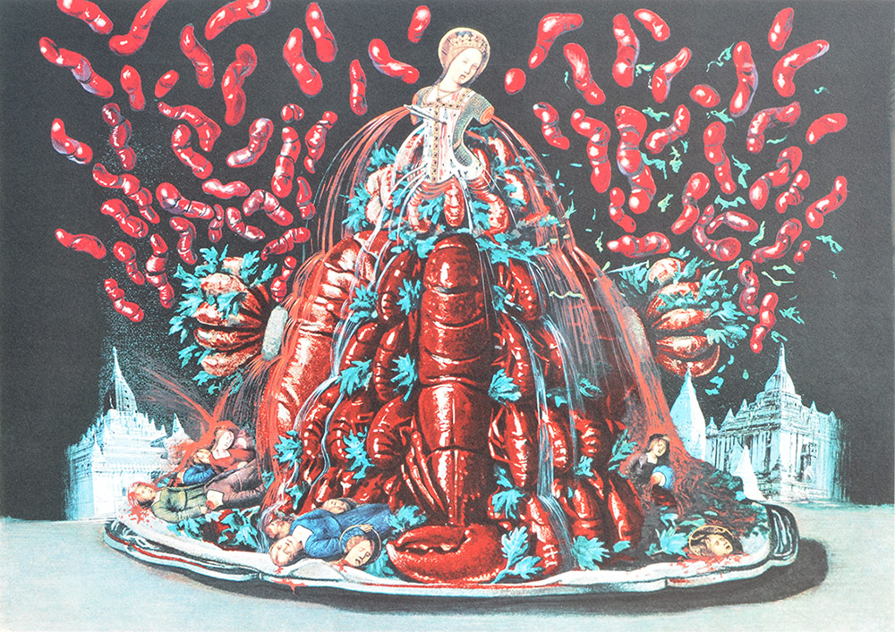 SALVADOR DALI FROM LES DINERS DE GALA: ''Les Canibalisms de L'Automne'', Photolithograph with ''Spoon in Crutches'' Engraving, pencil signed lower right, numbered lower left, framed.