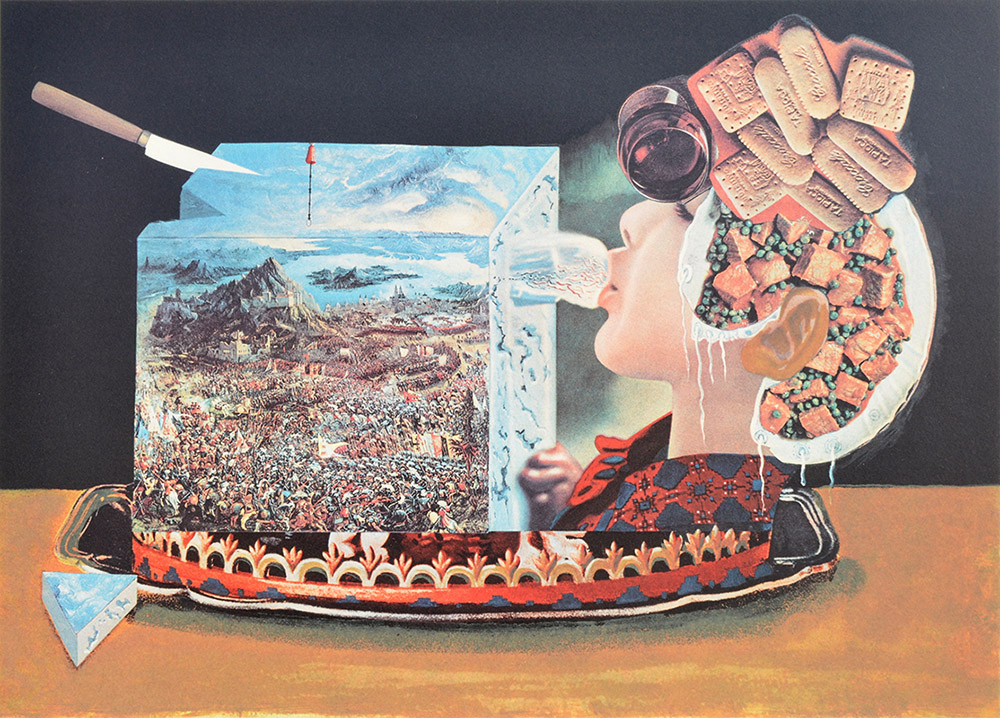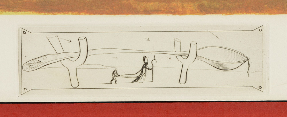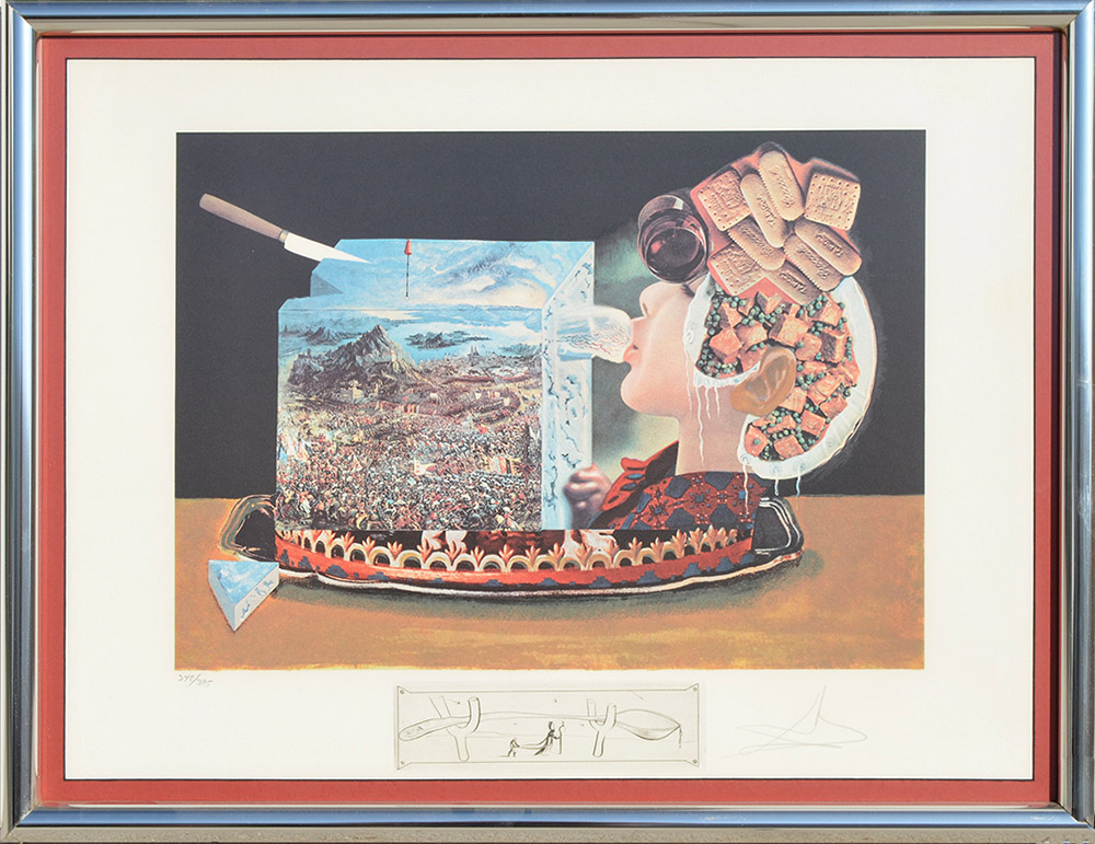 SALVADOR DALI FROM LES DINERS DE GALA: ''Les Pios Nonoches'', Photolithograph with ''Spoon in Crutches'' Engraving, pencil signed lower right, numbered lower left, framed.