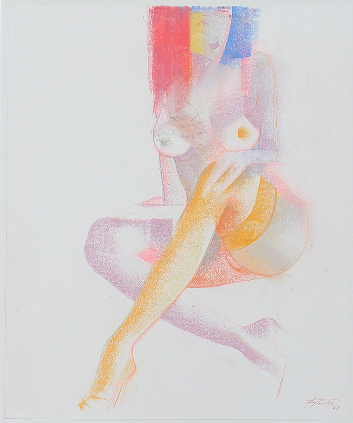 PRIESS, Helmut, (Austrian, 1941-2009): Nude Model, Pastel, 16.5 x 14.25, signed lower right, dated `83, custom frame,33.5'' x 37''. Helmut Priess is known for his abstract paintings and illustrations.
