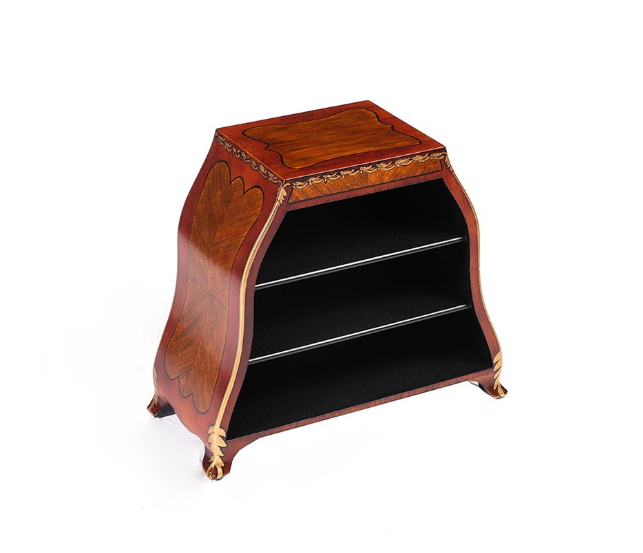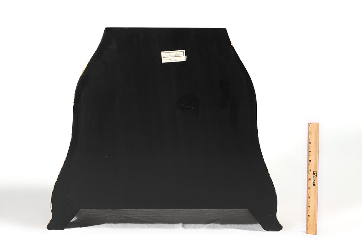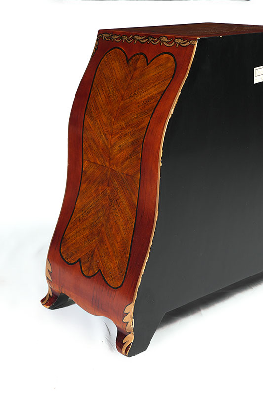 CHELSEA HOUSE HAND PAINTED BOOKSHELF END TABLE: Grain painted medallions with hand painted borders and foliate swags, serpentine bowed sides, 2 interior shelves. Overall measures 22'' h. x 26'' x 11''.